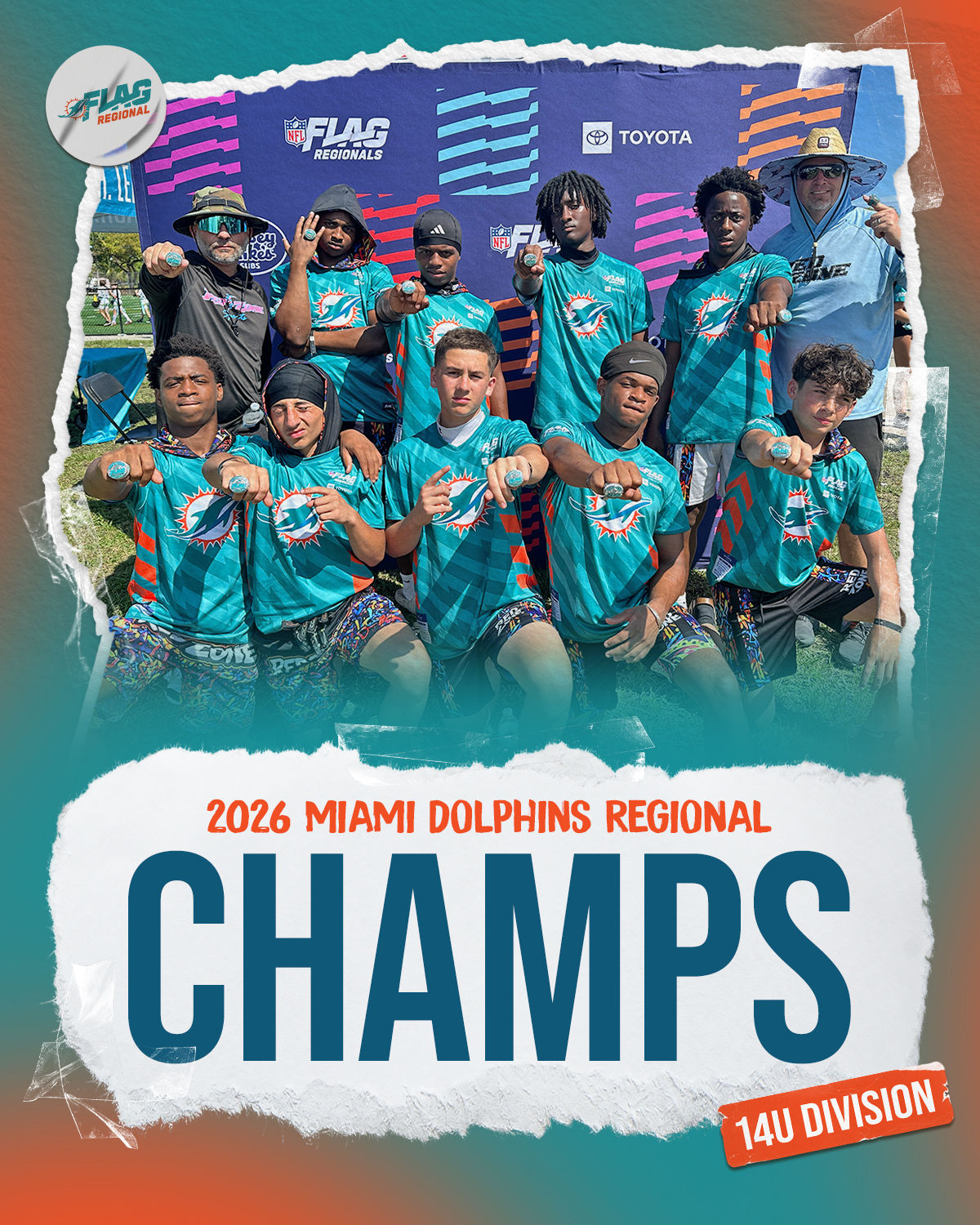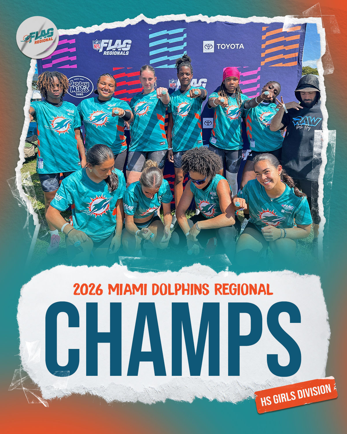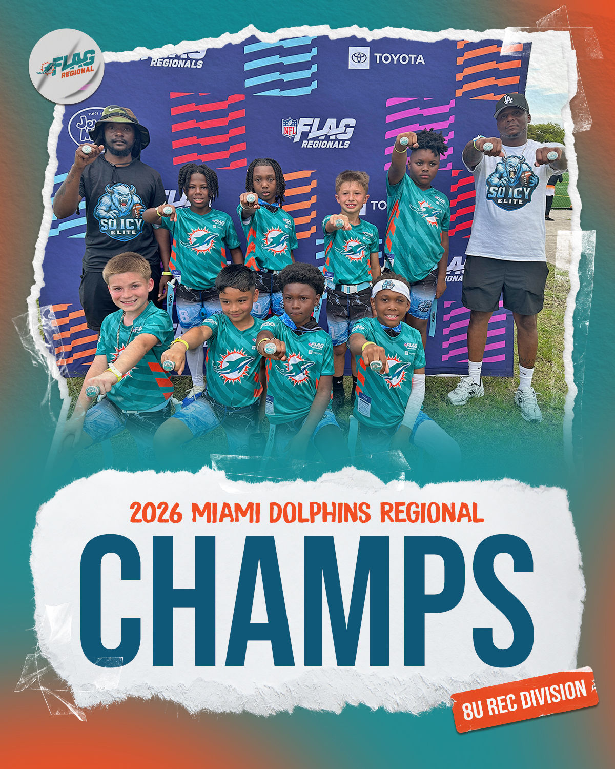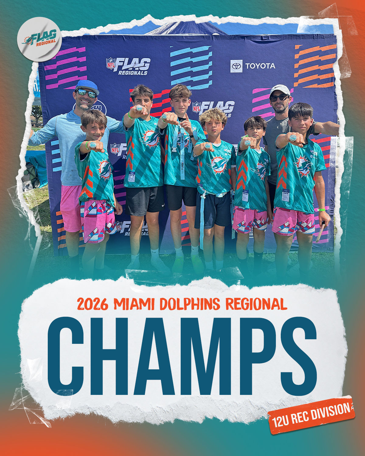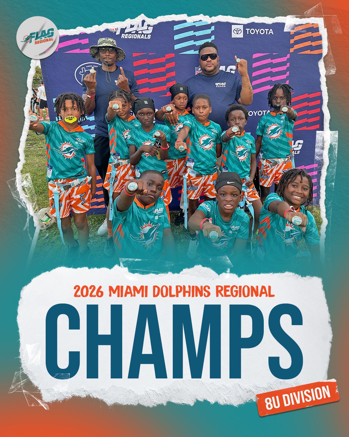 These teams battled it out on the field and came out on top at the 2026 Dolphins Regional Tournament presented by Toyota. Each of them earned their spot at the NFL FLAG Championships.
