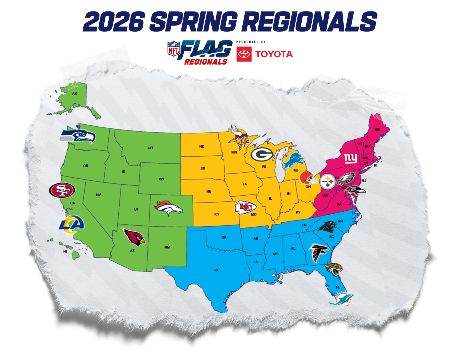 At every regional tournament, teams who win their age division will also win a free bid to the NFL FLAG Championships Presented by Toyota.
