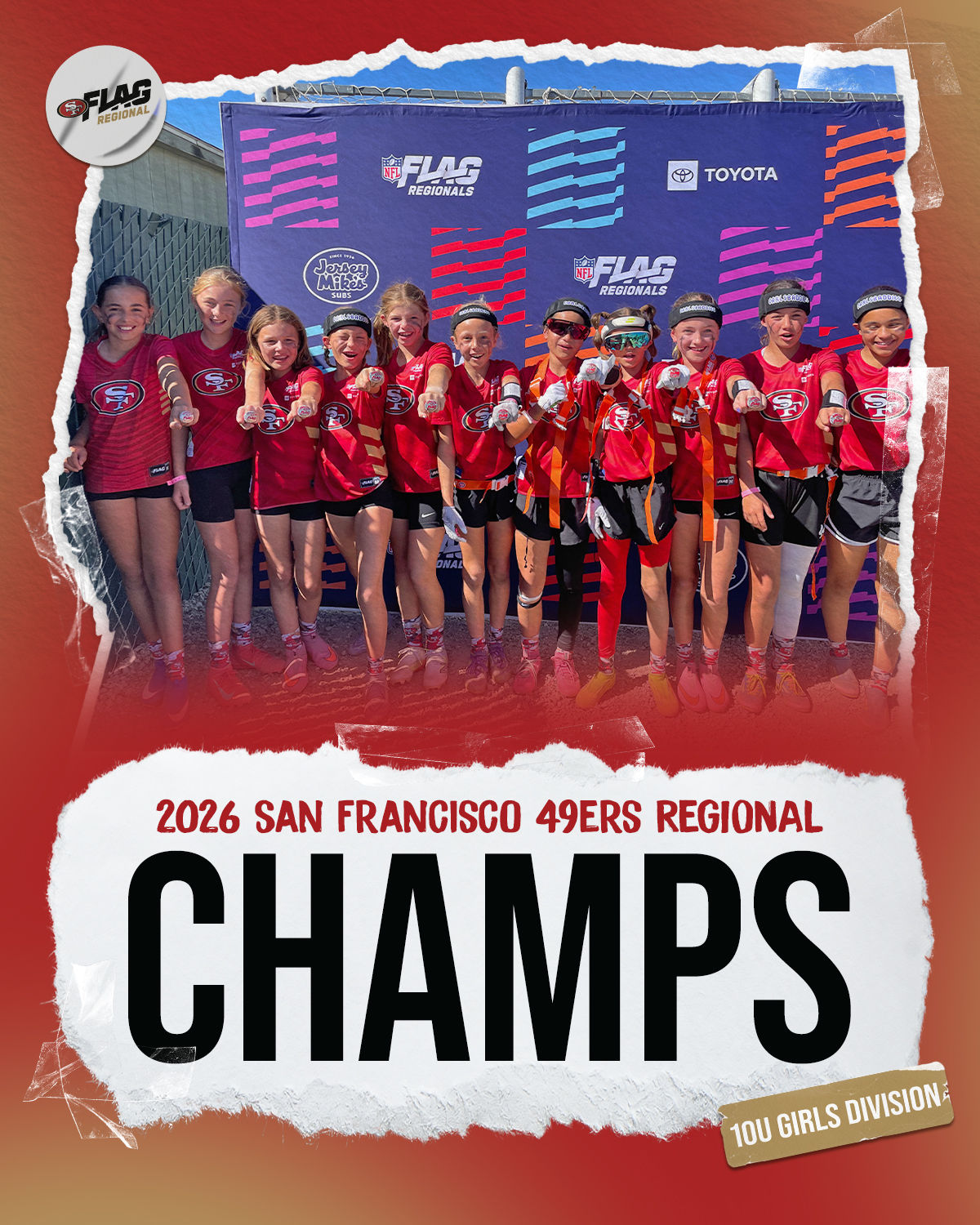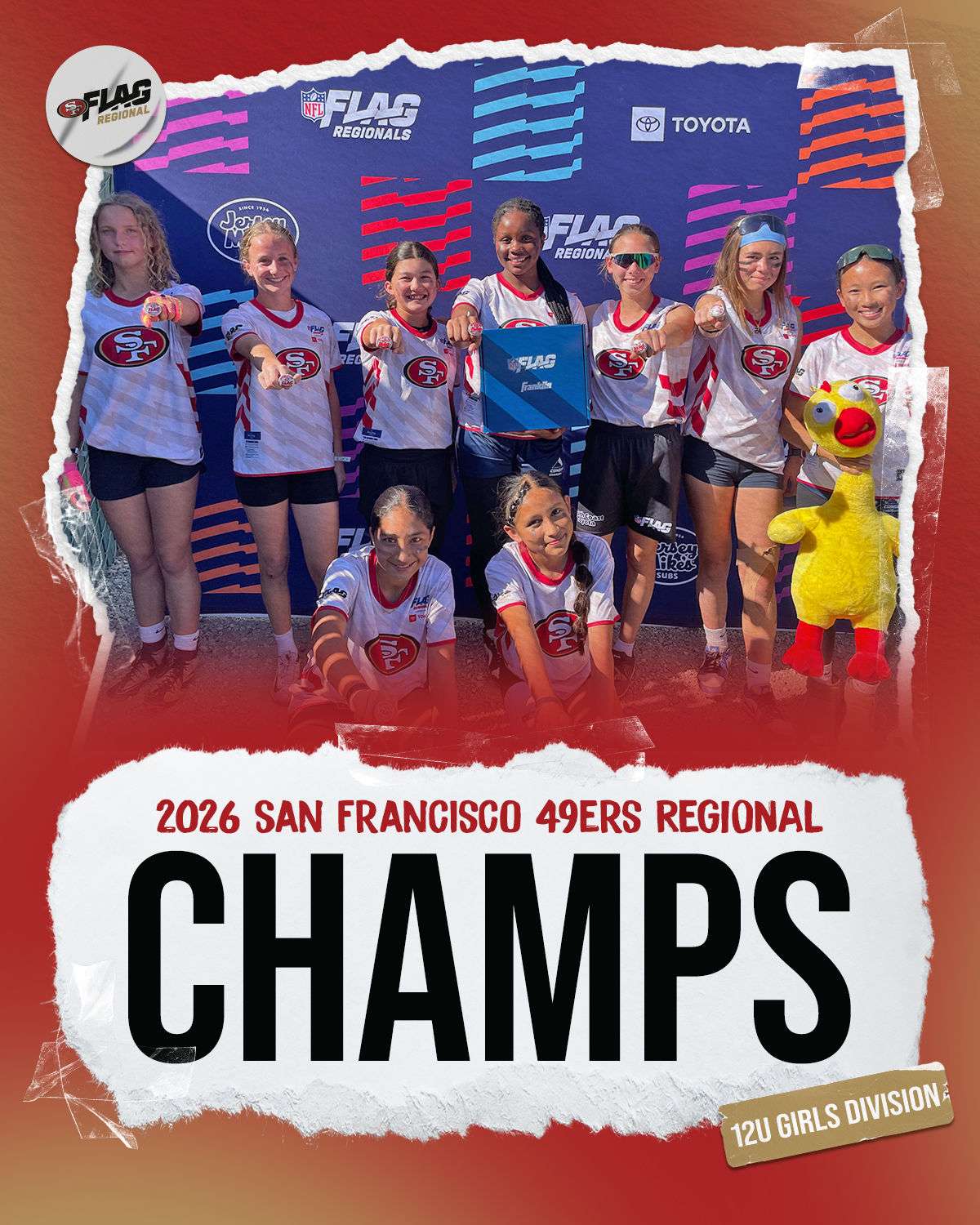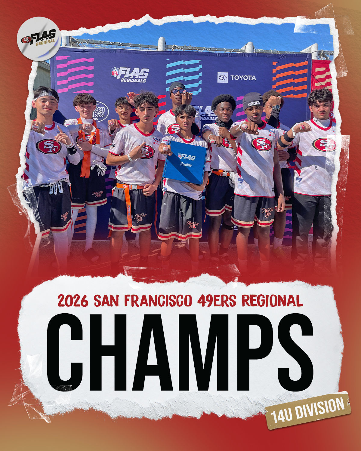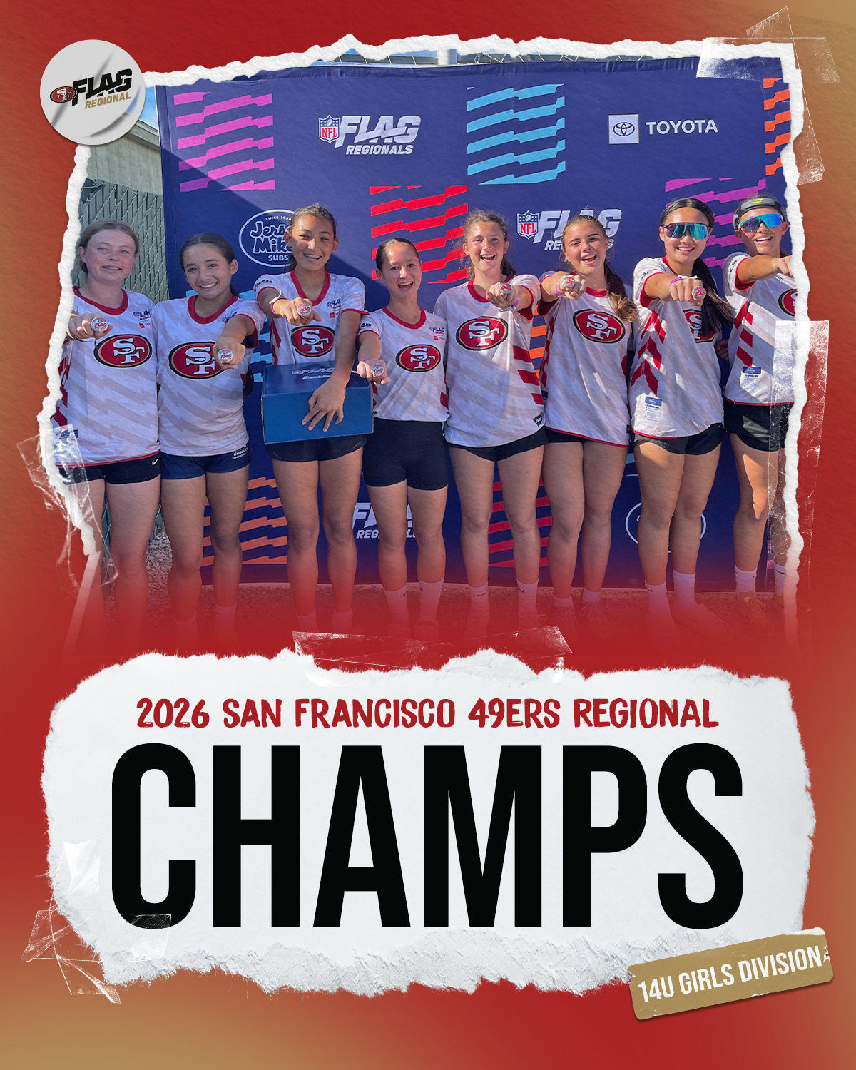 The only way to qualify for the NFL FLAG Championships is by winning a Regional or Super Regional Tournament. Qualified teams will receive a Full Bid entry to NFL FLAG Championships Presented by Toyota. Once a team qualifies, the entire roster (Athlete and Coaches) are FINAL. Edits may not be made to the rosters for the NFL FLAG Championships Presented by Toyota. Qualified players are ineligible to attend any other Regional Tournament in any division. Qualified teams are not permitted to change age divisions for the NFL FLAG Championships Presented by Toyota.
