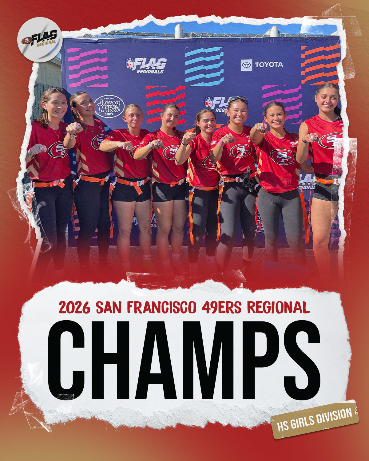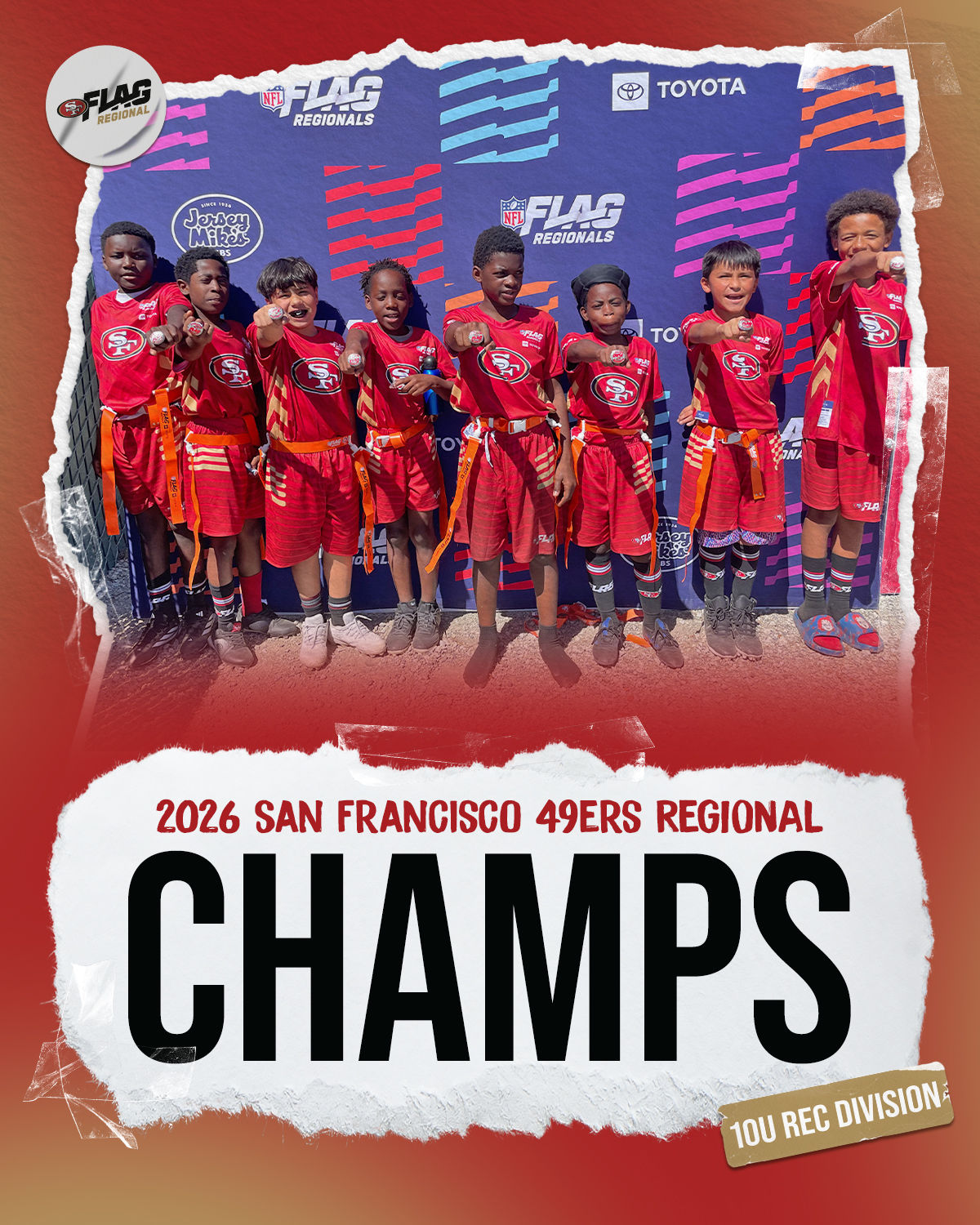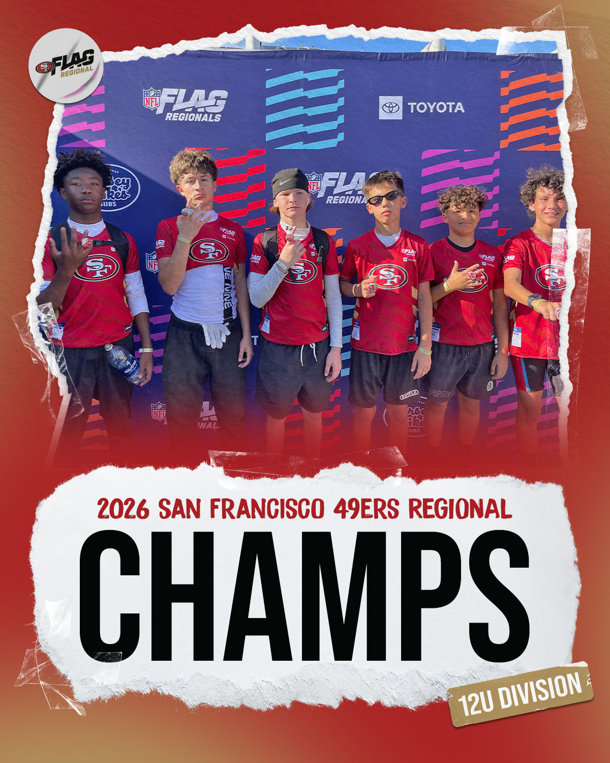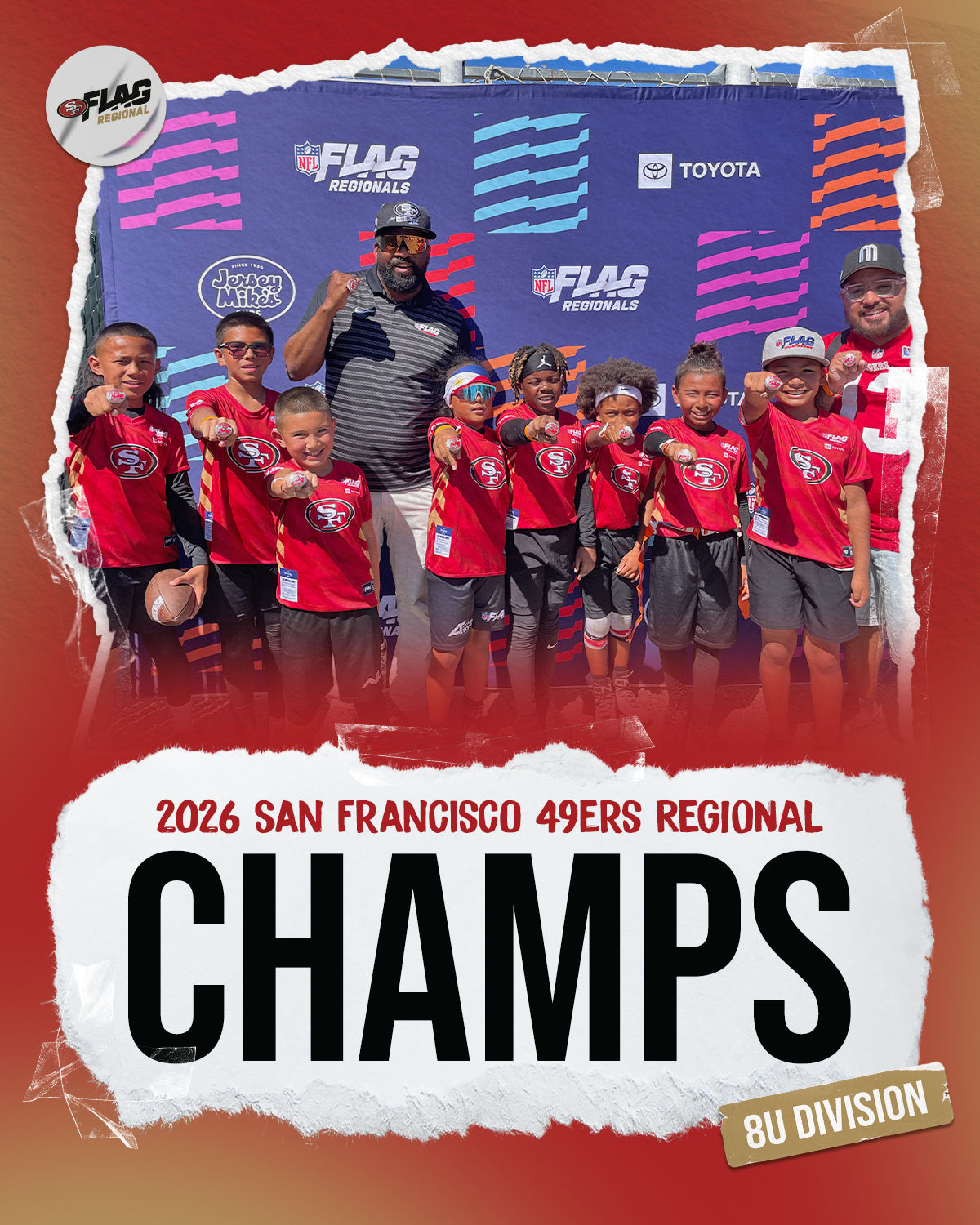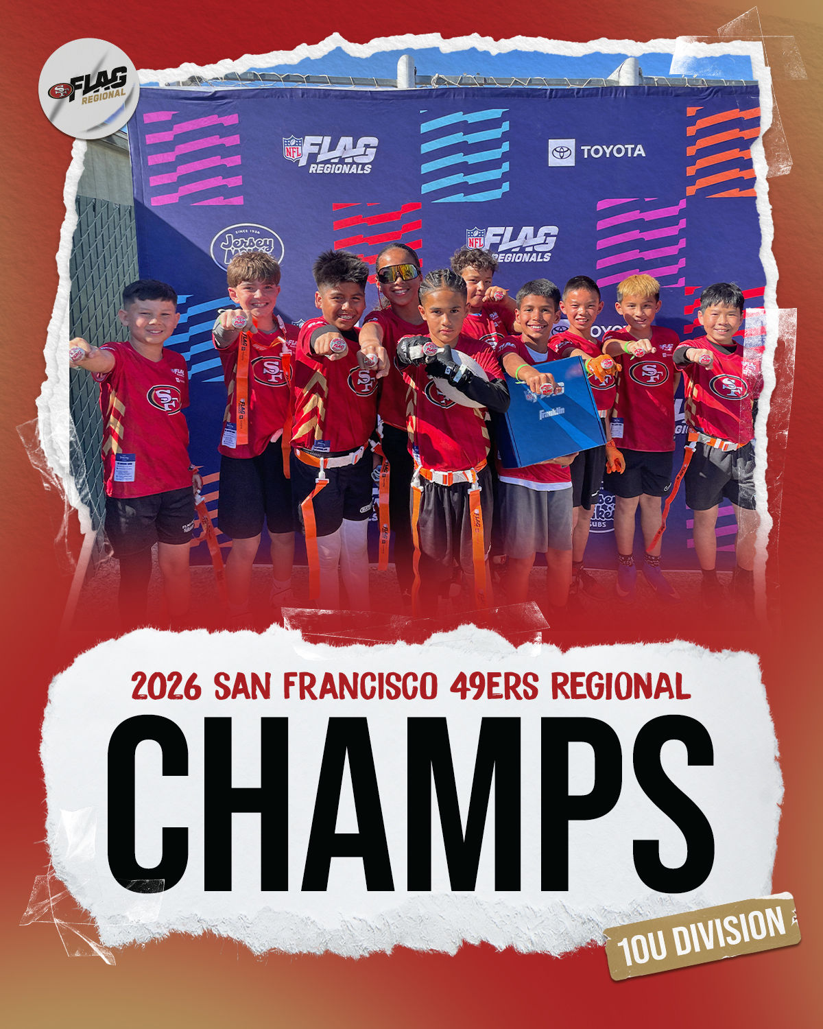 The only way to qualify for the NFL FLAG Championships is by winning a Regional or Super Regional Tournament. Qualified teams will receive a Full Bid entry to NFL FLAG Championships Presented by Toyota. Once a team qualifies, the entire roster (Athlete and Coaches) are FINAL. Edits may not be made to the rosters for the NFL FLAG Championships Presented by Toyota. Qualified players are ineligible to attend any other Regional Tournament in any division. Qualified teams are not permitted to change age divisions for the NFL FLAG Championships Presented by Toyota.