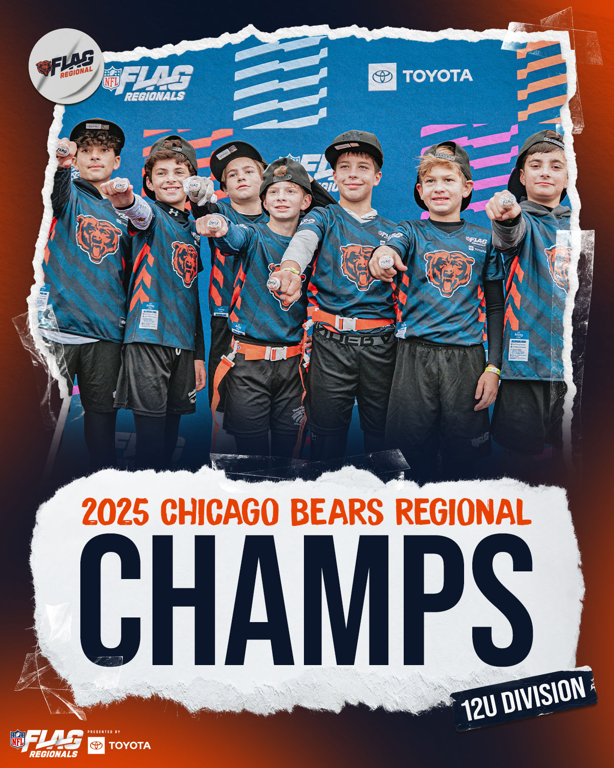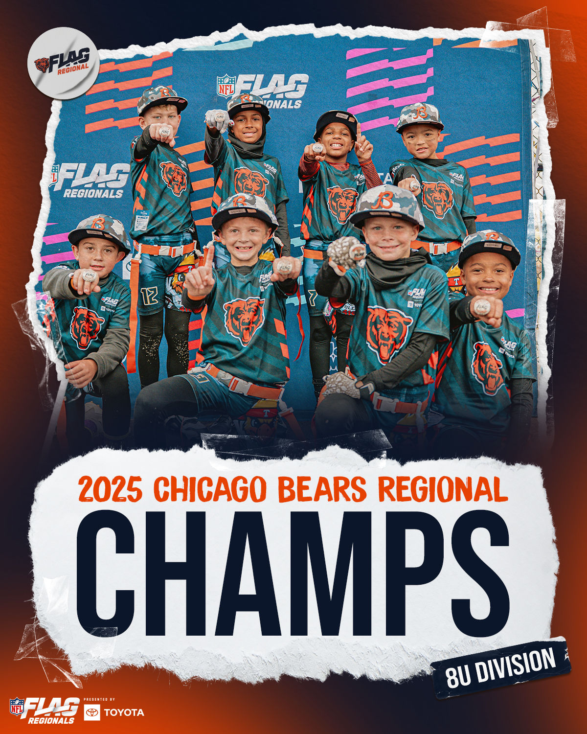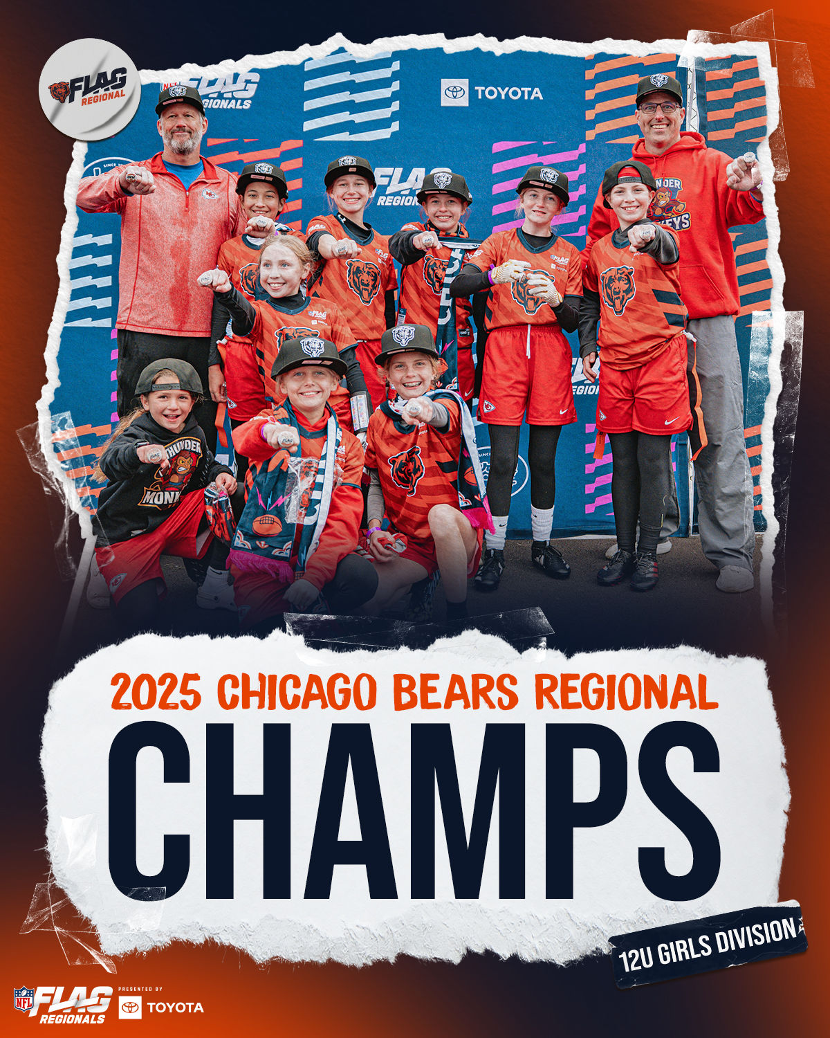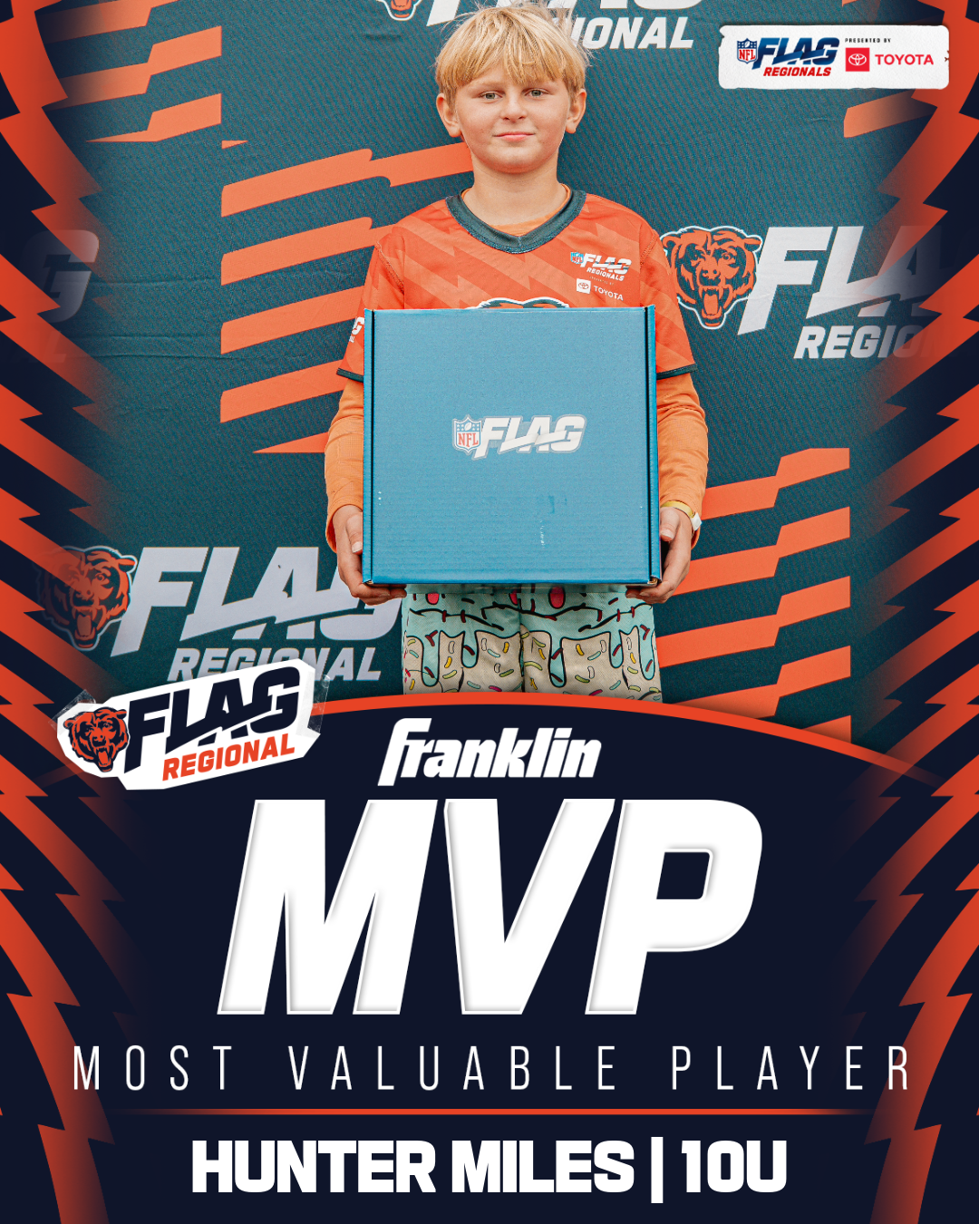 The only way to qualify for the NFL FLAG Championships is by winning a Regional or Super Regional Tournament. Qualified teams will receive a Full Bid entry to NFL FLAG Championships Presented by Toyota. Once a team qualifies, the entire roster (Athlete and Coaches) are FINAL. Edits may not be made to the rosters for the NFL FLAG Championships Presented by Toyota. Qualified players are ineligible to attend any other Regional Tournament in any division. Qualified teams are not permitted to change age divisions for the NFL FLAG Championships Presented by Toyota.