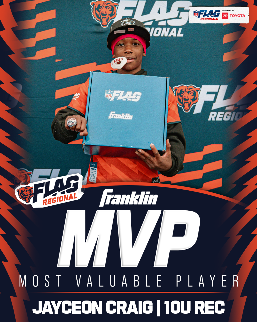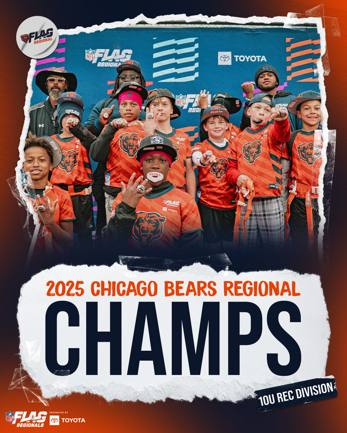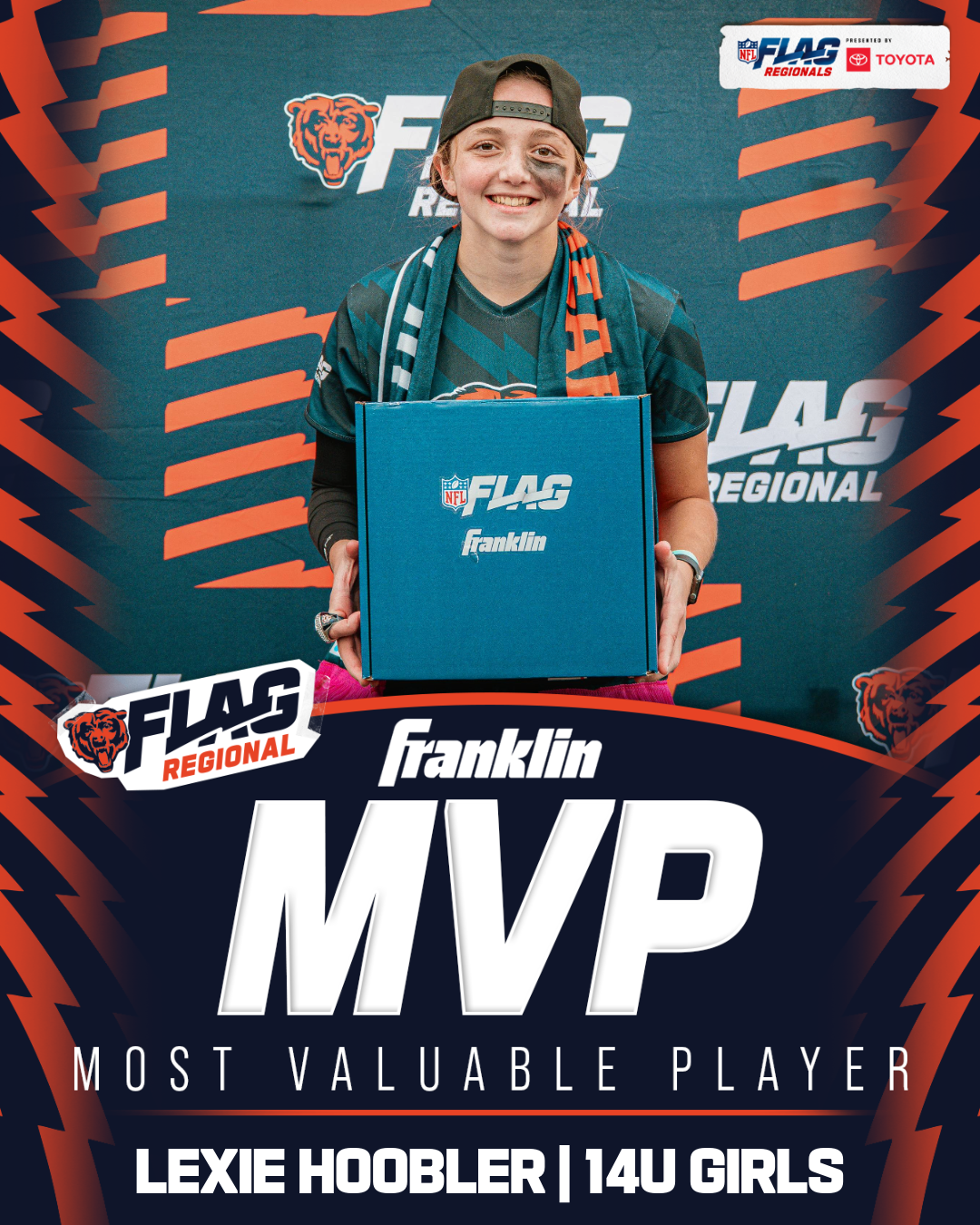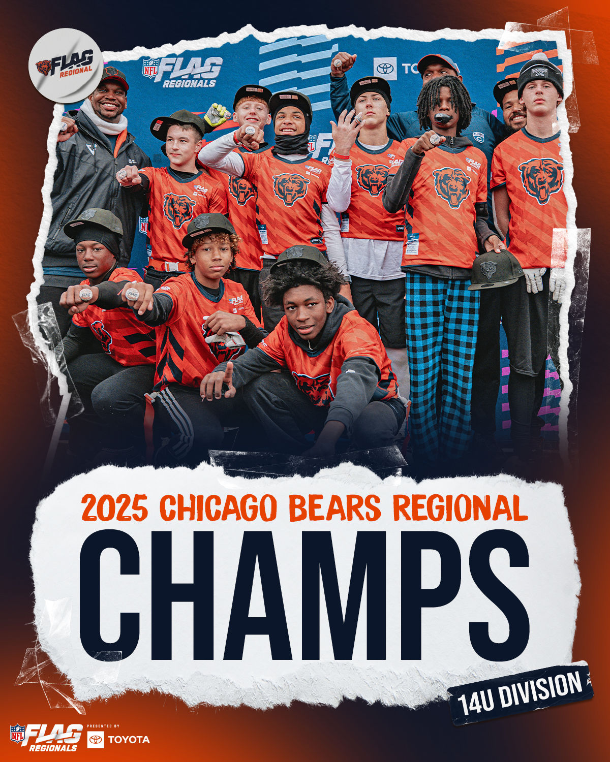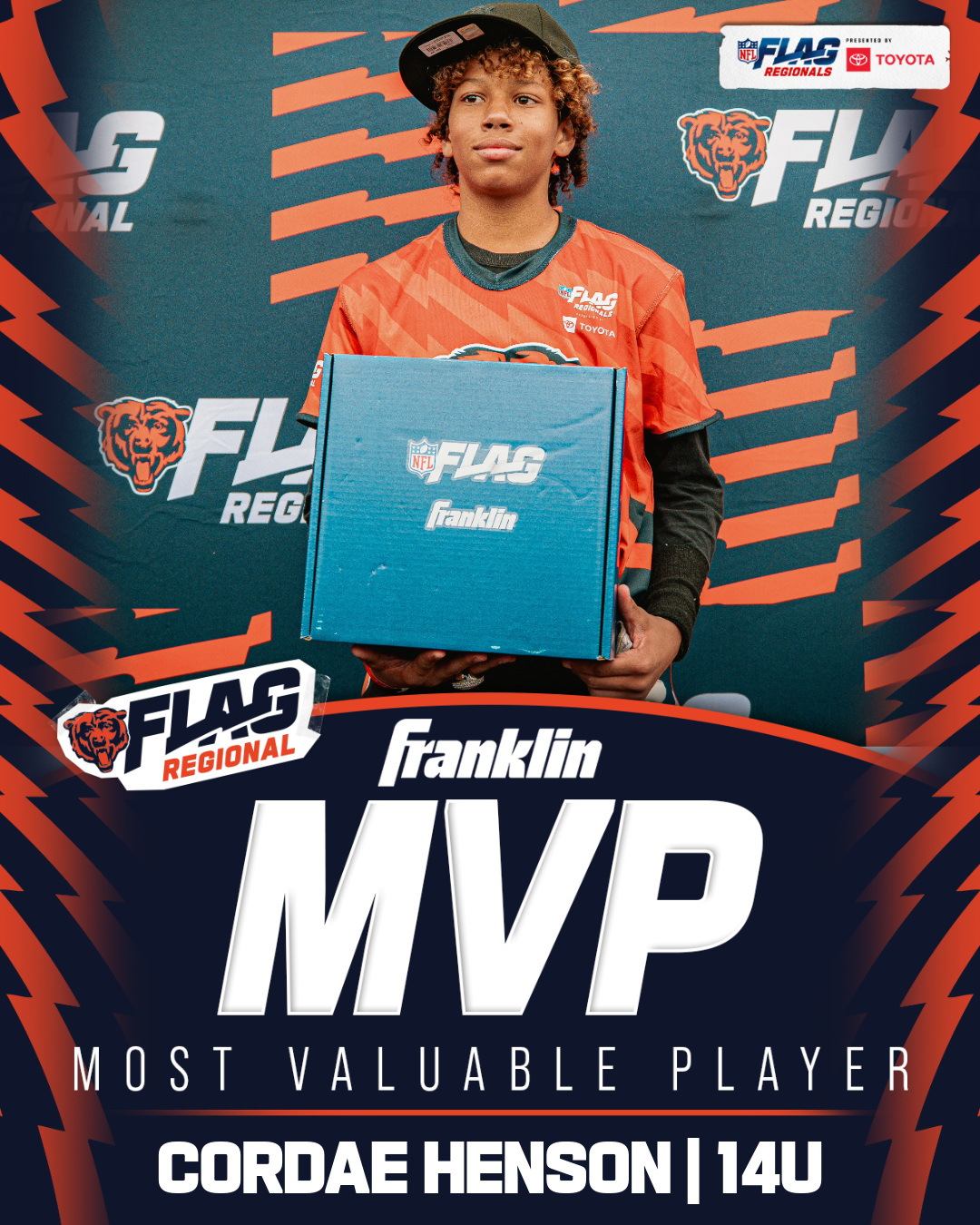 The only way to qualify for the NFL FLAG Championships is by winning a Regional or Super Regional Tournament. Qualified teams will receive a Full Bid entry to NFL FLAG Championships Presented by Toyota. Once a team qualifies, the entire roster (Athlete and Coaches) are FINAL. Edits may not be made to the rosters for the NFL FLAG Championships Presented by Toyota. Qualified players are ineligible to attend any other Regional Tournament in any division. Qualified teams are not permitted to change age divisions for the NFL FLAG Championships Presented by Toyota.