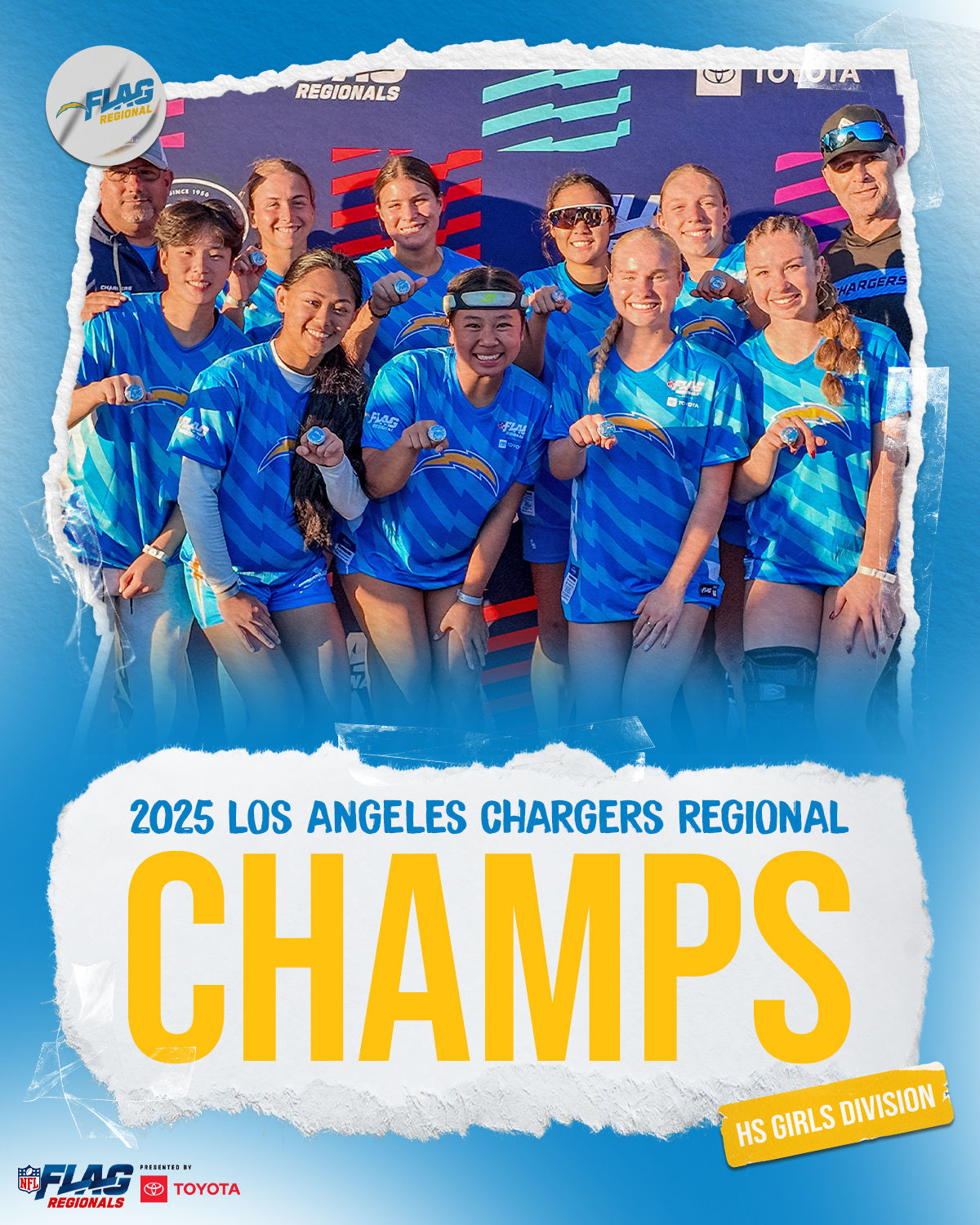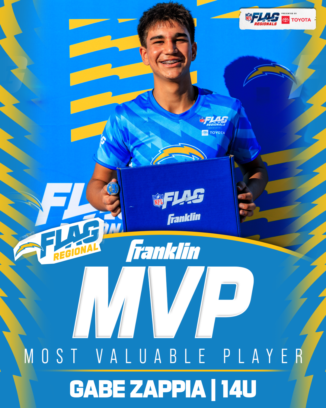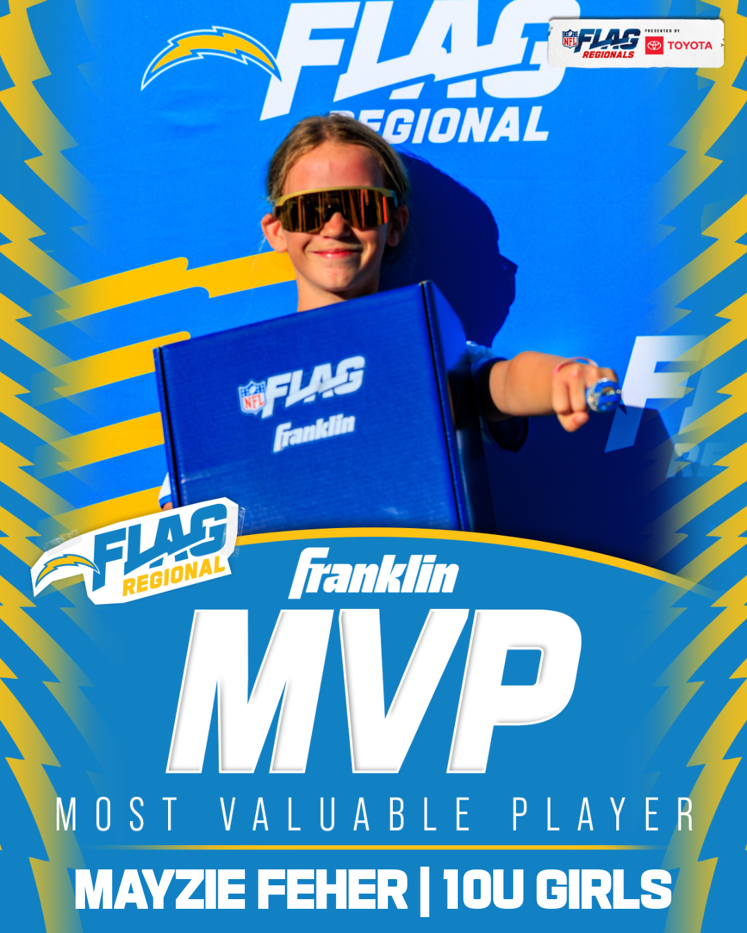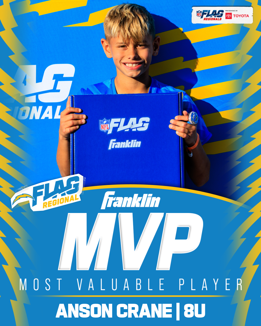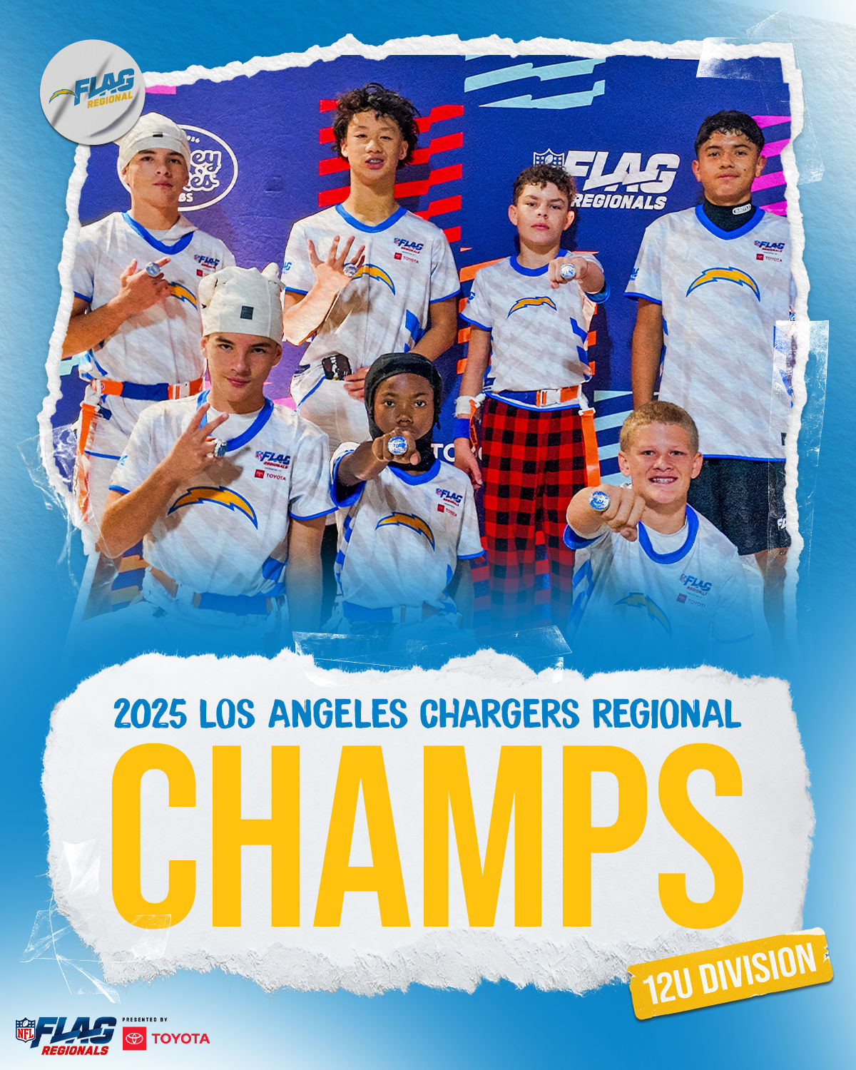 The only way to qualify for the NFL FLAG Championships is by winning a Regional or Super Regional Tournament. Qualified teams will receive a Full Bid entry to NFL FLAG Championships Presented by Toyota. Once a team qualifies, the entire roster (Athlete and Coaches) are FINAL. Edits may not be made to the rosters for the NFL FLAG Championships Presented by Toyota. Qualified players are ineligible to attend any other Regional Tournament in any division. Qualified teams are not permitted to change age divisions for the NFL FLAG Championships Presented by Toyota.