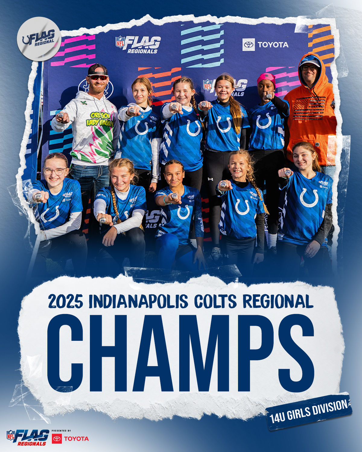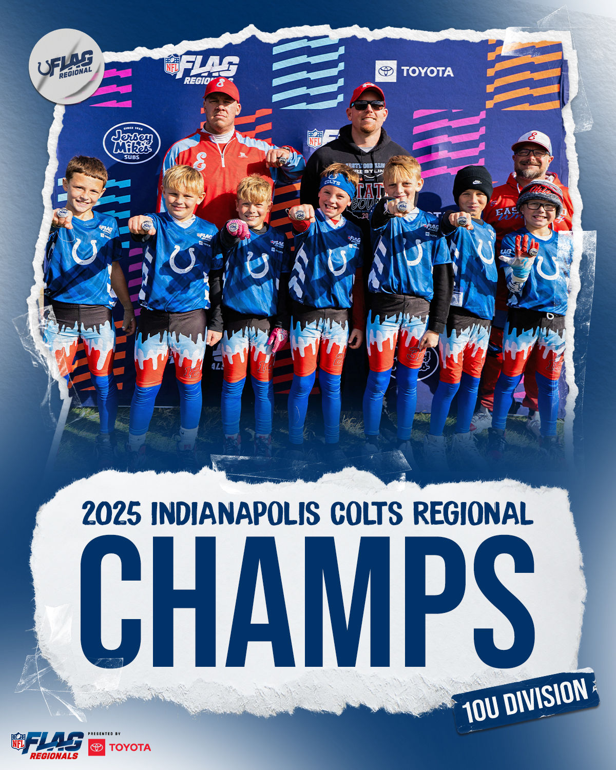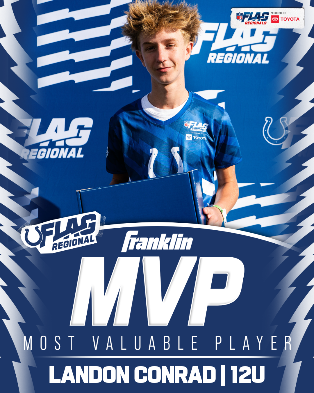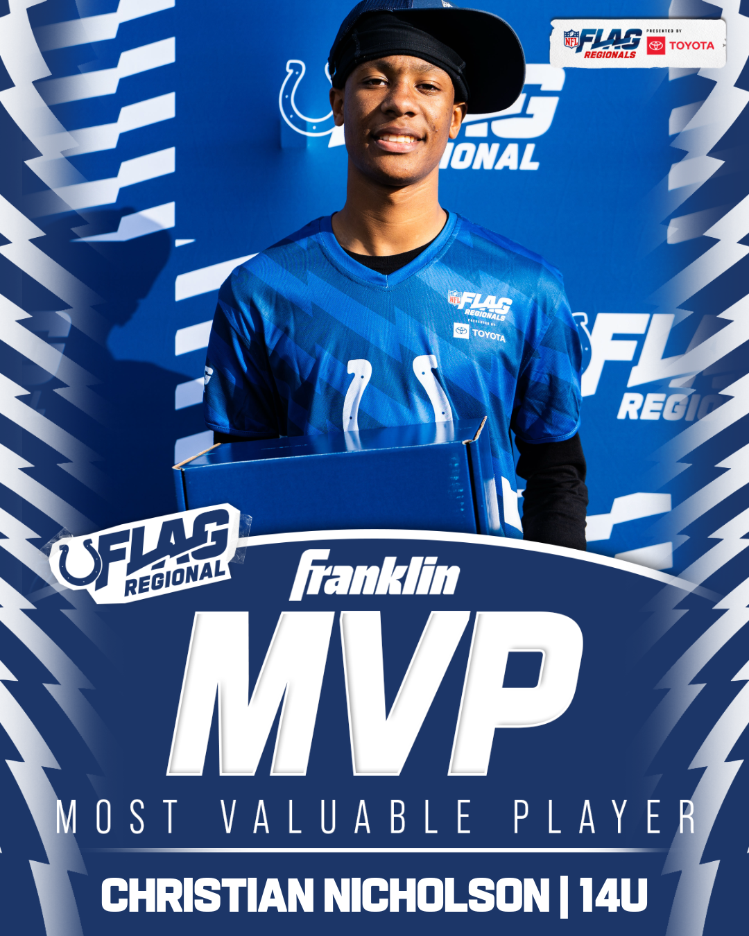 The only way to qualify for the NFL FLAG Championships is by winning a Regional or Super Regional Tournament. Qualified teams will receive a Full Bid entry to NFL FLAG Championships Presented by Toyota. Once a team qualifies, the entire roster (Athlete and Coaches) are FINAL. Edits may not be made to the rosters for the NFL FLAG Championships Presented by Toyota. Qualified players are ineligible to attend any other Regional Tournament in any division. Qualified teams are not permitted to change age divisions for the NFL FLAG Championships Presented by Toyota.
