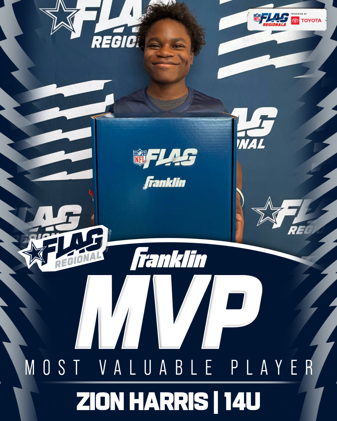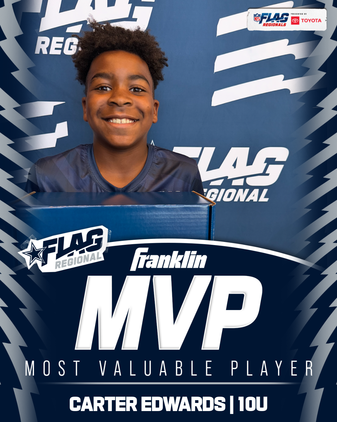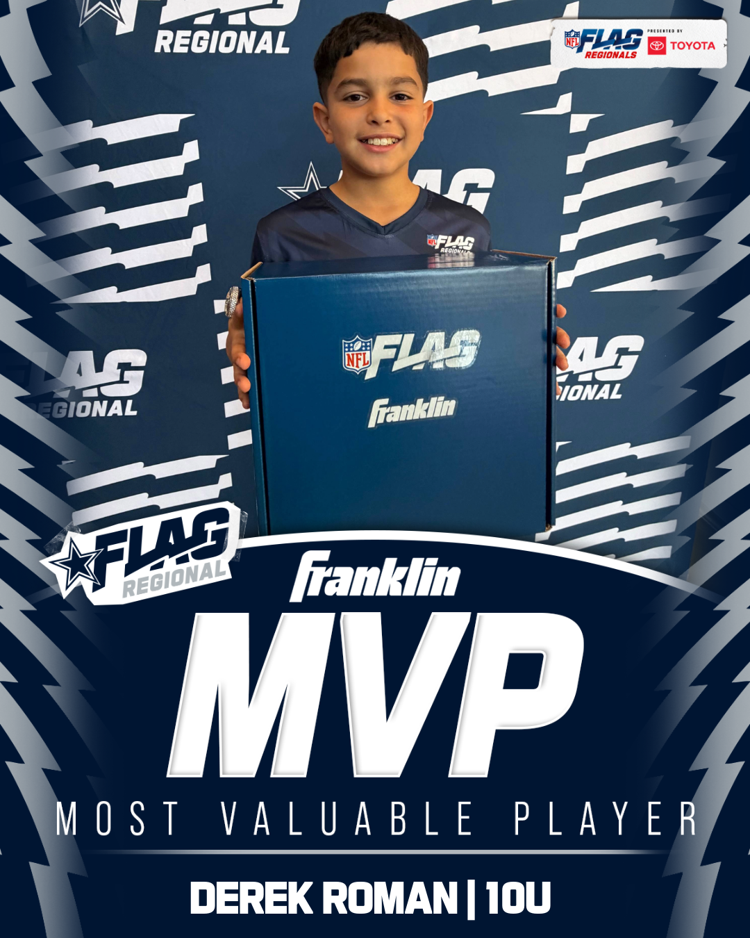 The only way to qualify for the NFL FLAG Championships is by winning a Regional or Super Regional Tournament. Qualified teams will receive a Full Bid entry to NFL FLAG Championships Presented by Toyota. Once a team qualifies, the entire roster (Athlete and Coaches) are FINAL. Edits may not be made to the rosters for the NFL FLAG Championships Presented by Toyota. Qualified players are ineligible to attend any other Regional Tournament in any division. Qualified teams are not permitted to change age divisions for the NFL FLAG Championships Presented by Toyota.