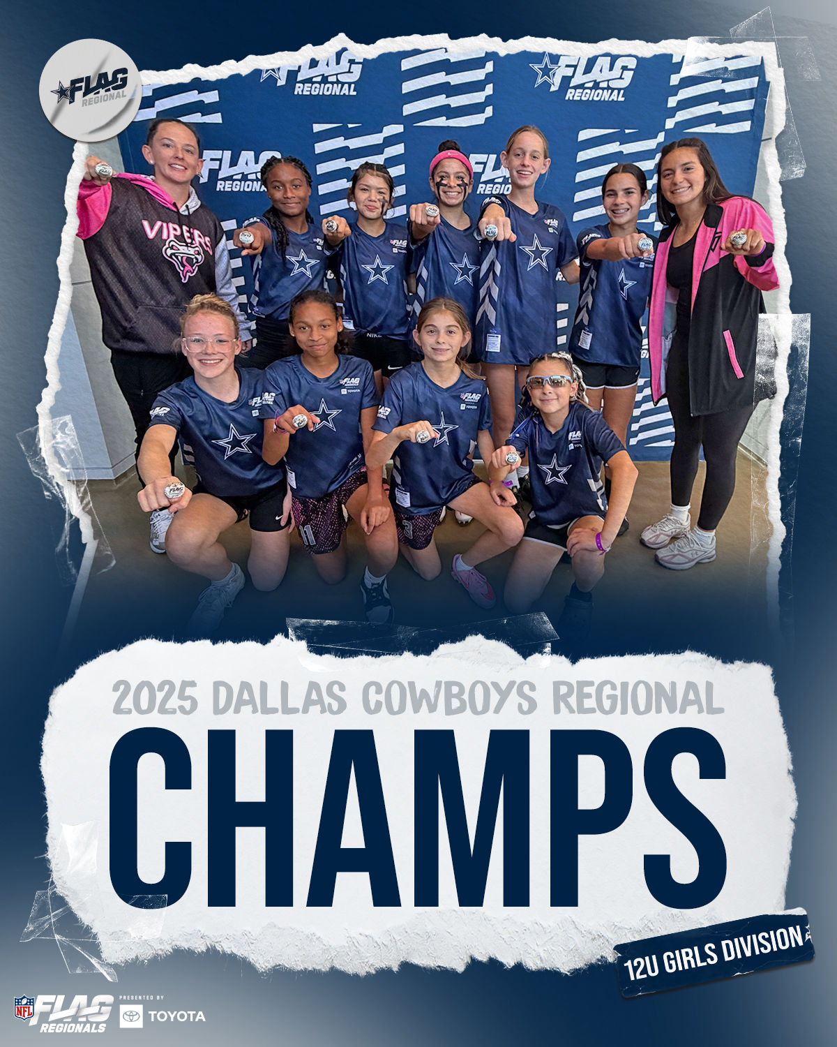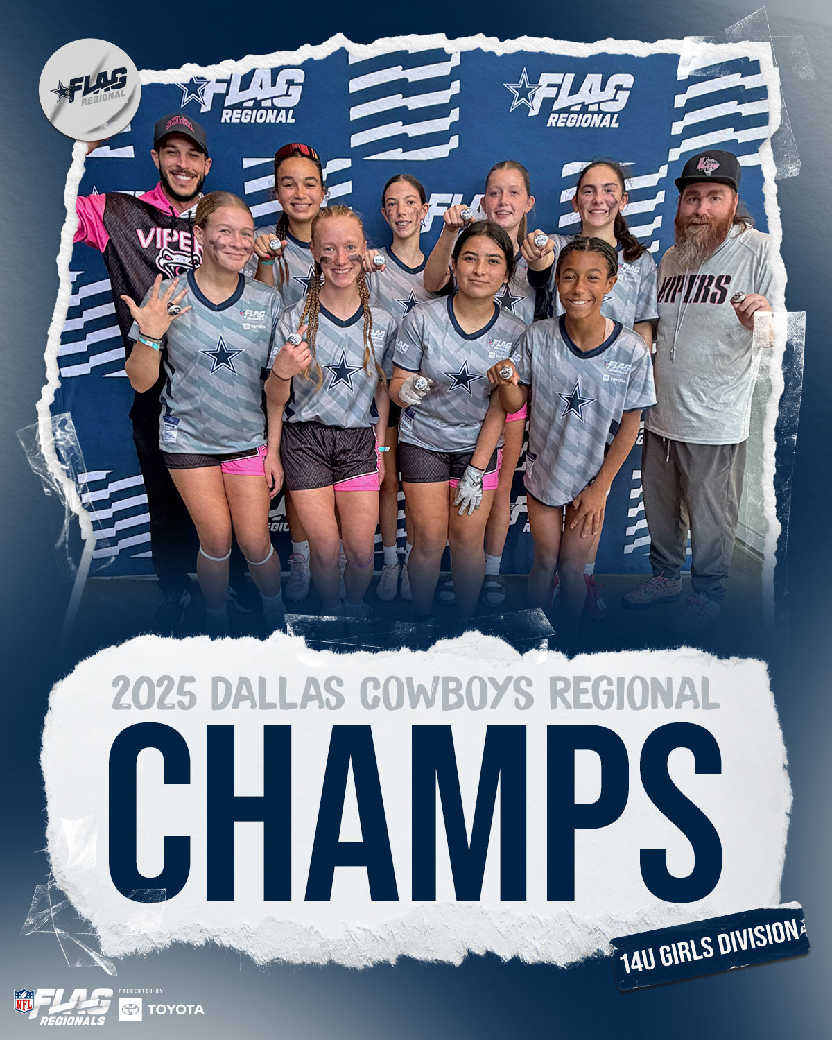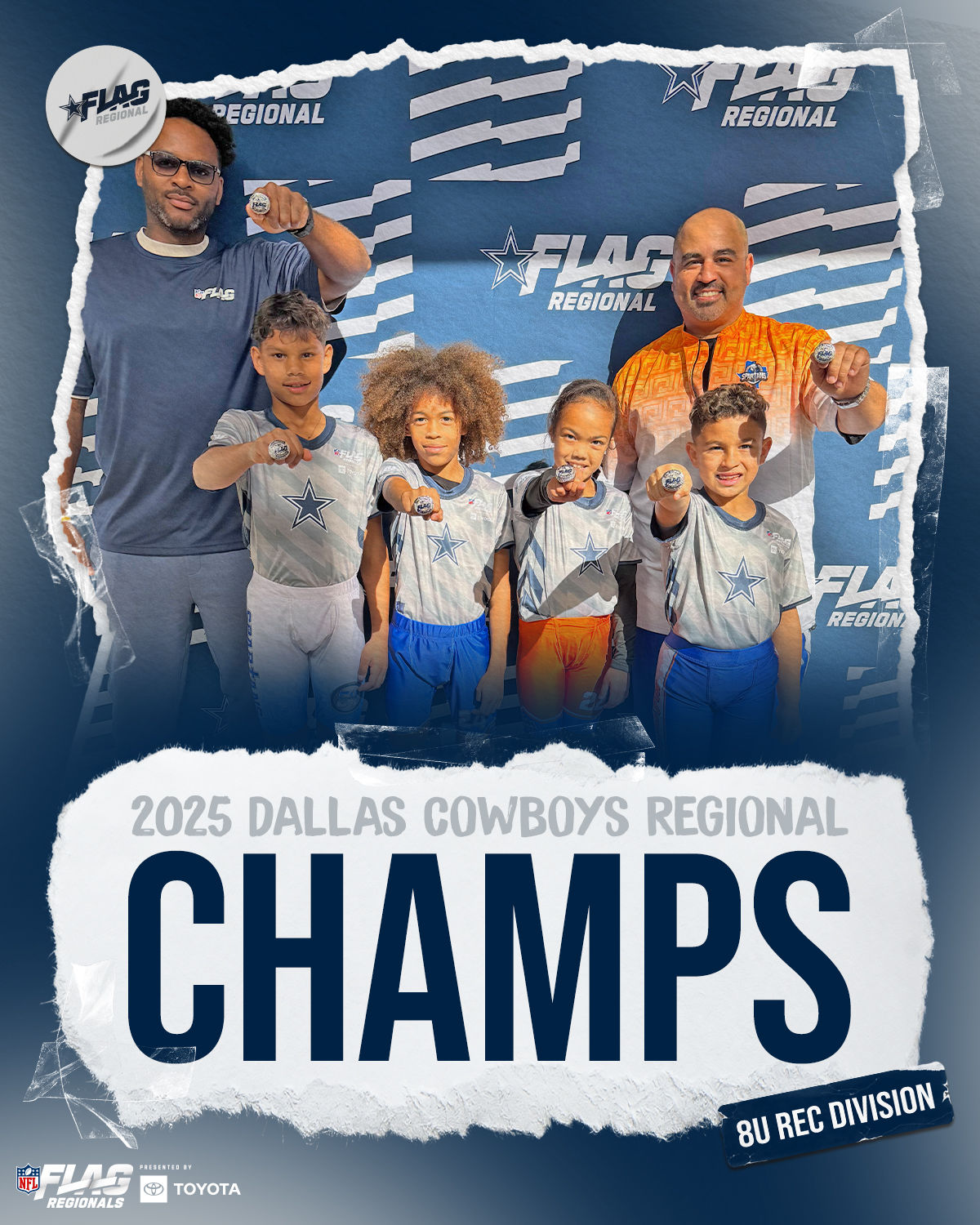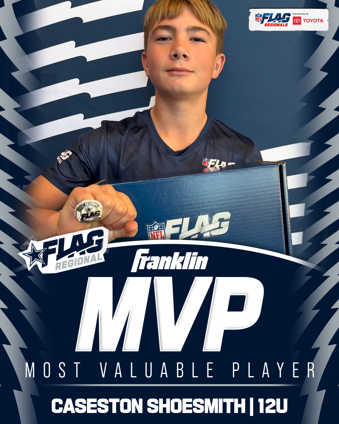 The only way to qualify for the NFL FLAG Championships is by winning a Regional or Super Regional Tournament. Qualified teams will receive a Full Bid entry to NFL FLAG Championships Presented by Toyota. Once a team qualifies, the entire roster (Athlete and Coaches) are FINAL. Edits may not be made to the rosters for the NFL FLAG Championships Presented by Toyota. Qualified players are ineligible to attend any other Regional Tournament in any division. Qualified teams are not permitted to change age divisions for the NFL FLAG Championships Presented by Toyota.