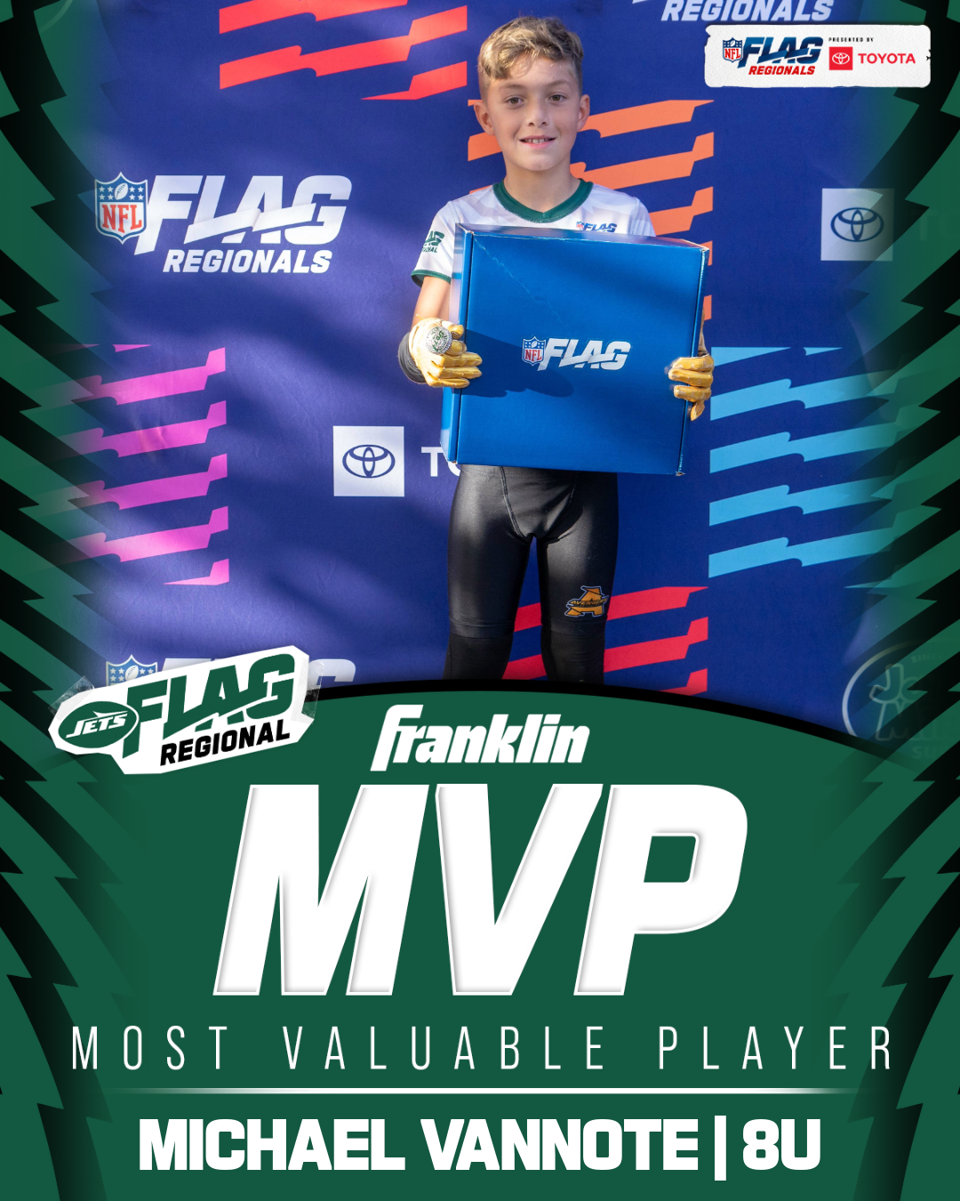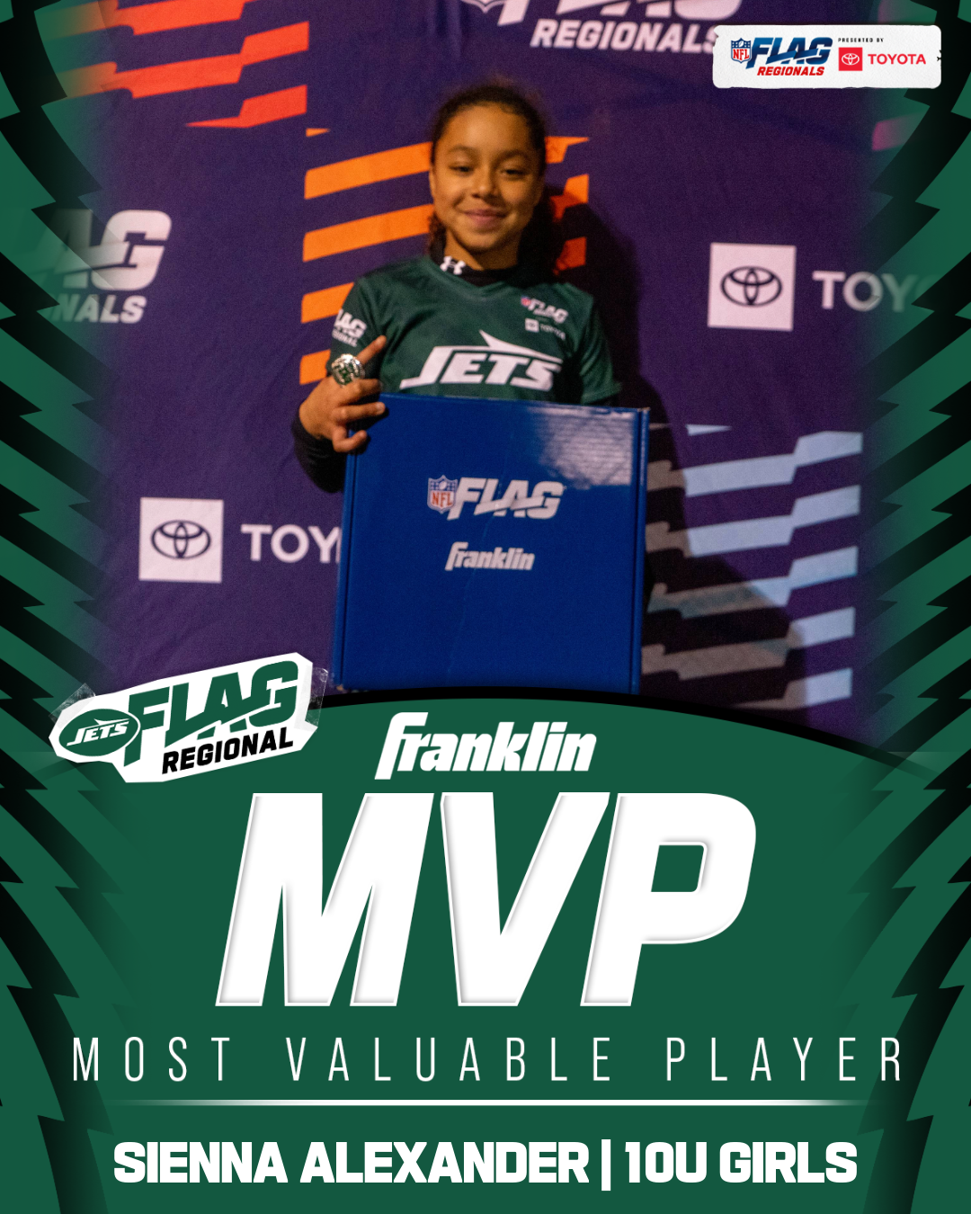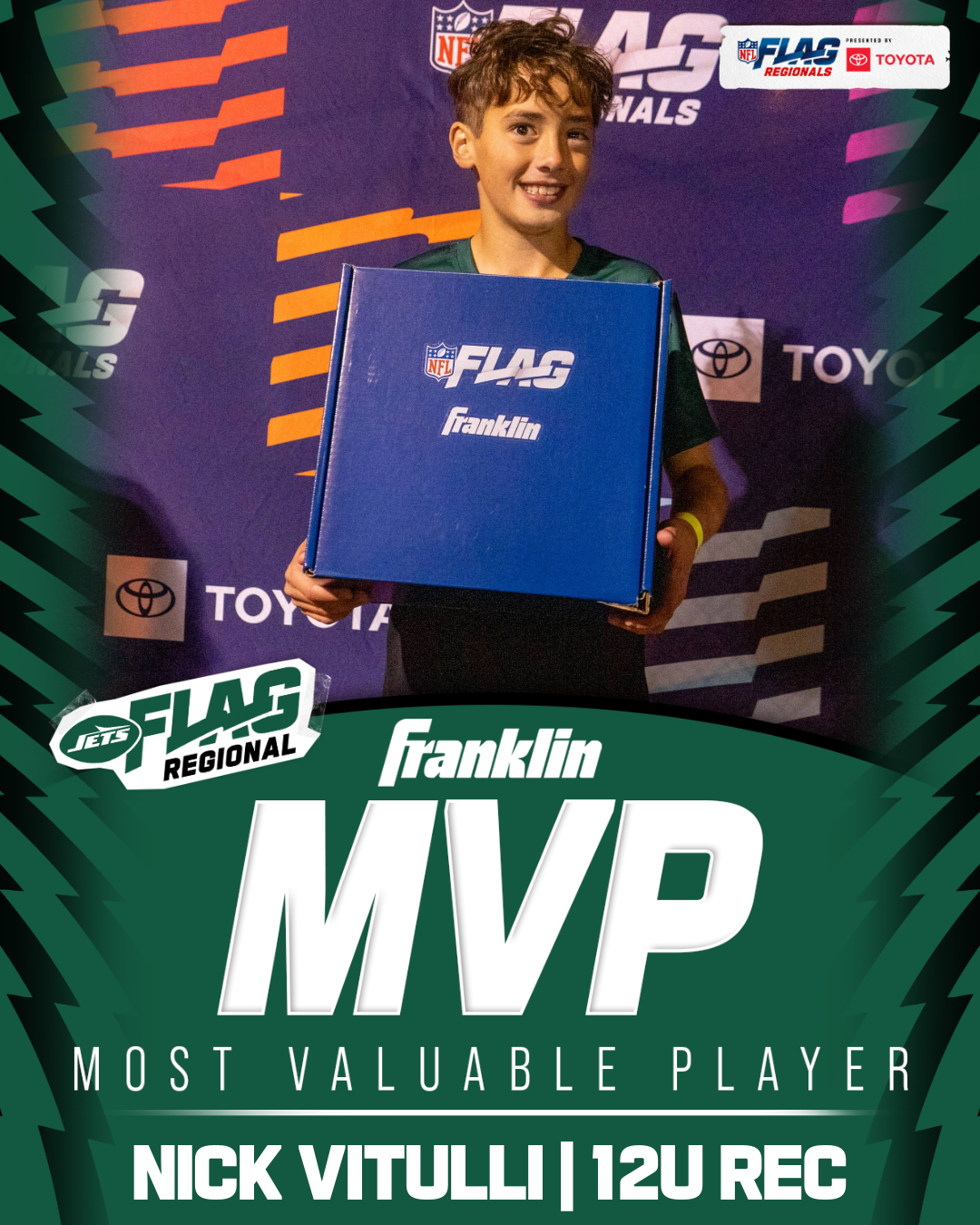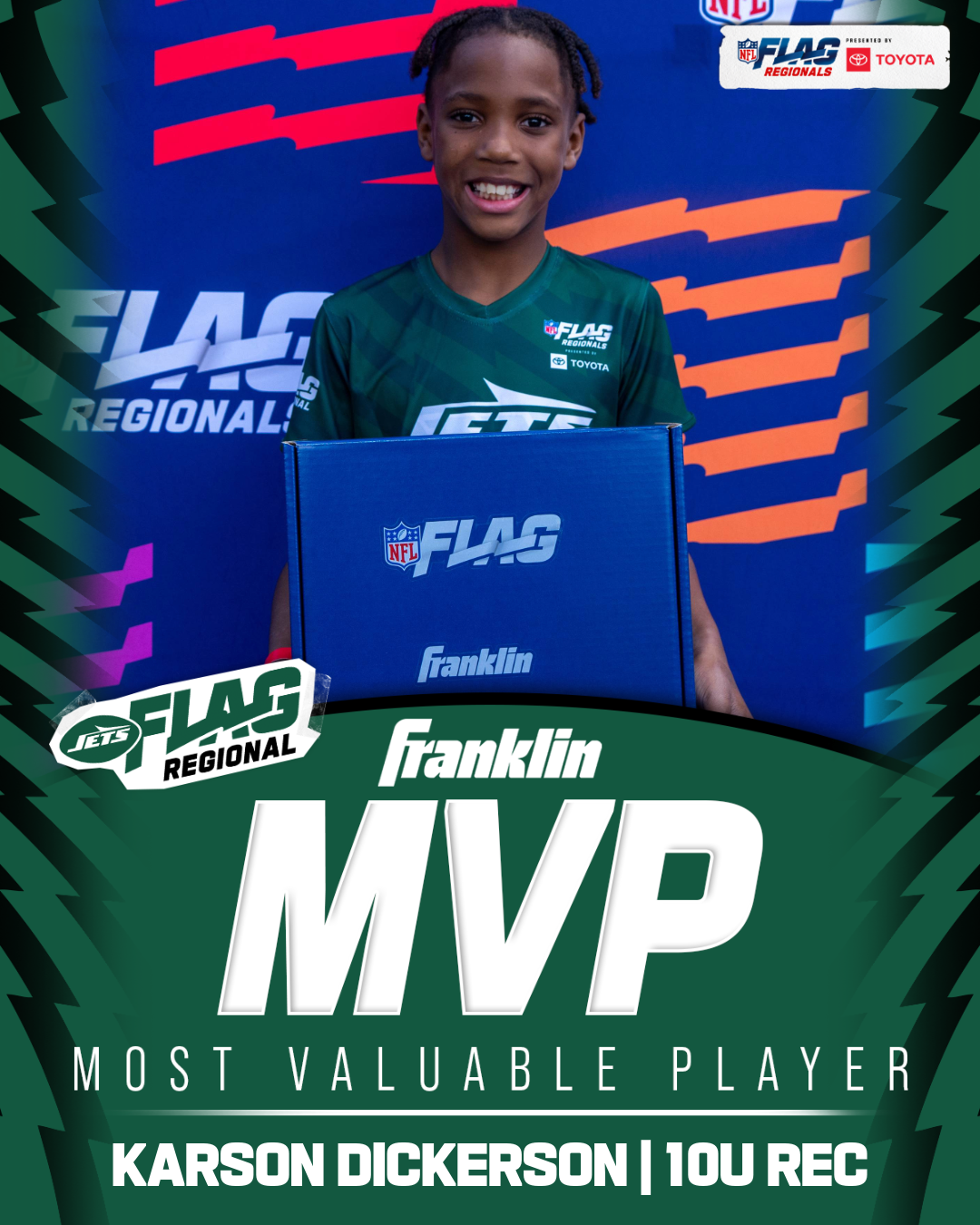 The only way to qualify for the NFL FLAG Championships is by winning a Regional or Super Regional Tournament. Qualified teams will receive a Full Bid entry to NFL FLAG Championships Presented by Toyota. Once a team qualifies, the entire roster (Athlete and Coaches) are FINAL. Edits may not be made to the rosters for the NFL FLAG Championships Presented by Toyota. Qualified players are ineligible to attend any other Regional Tournament in any division. Qualified teams are not permitted to change age divisions for the NFL FLAG Championships Presented by Toyota.