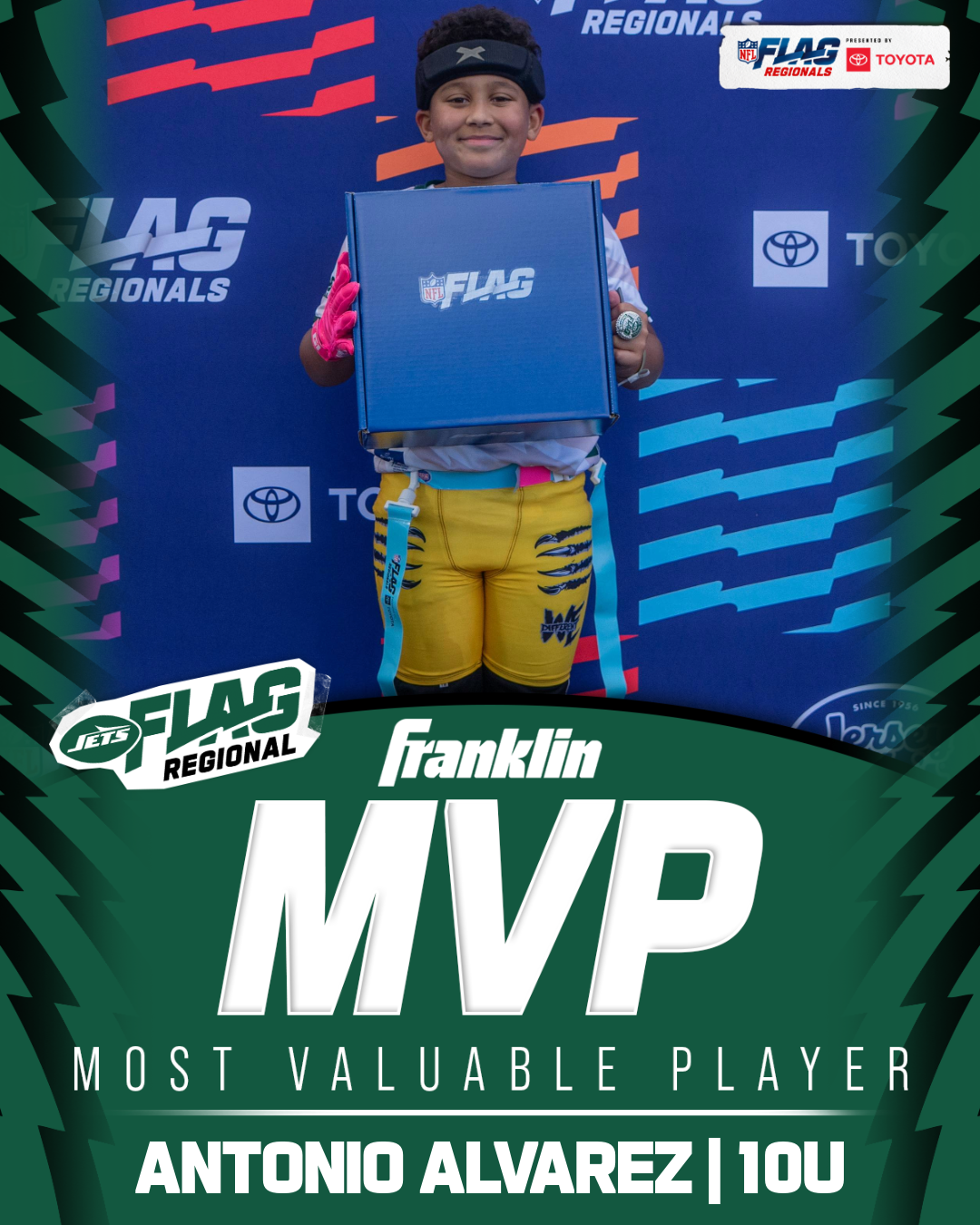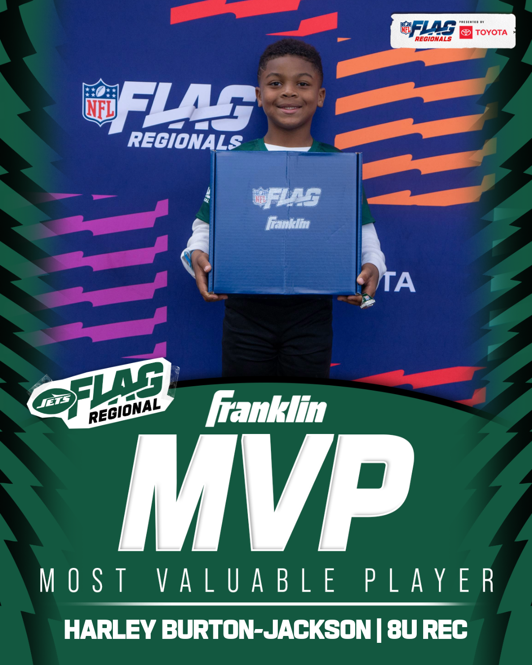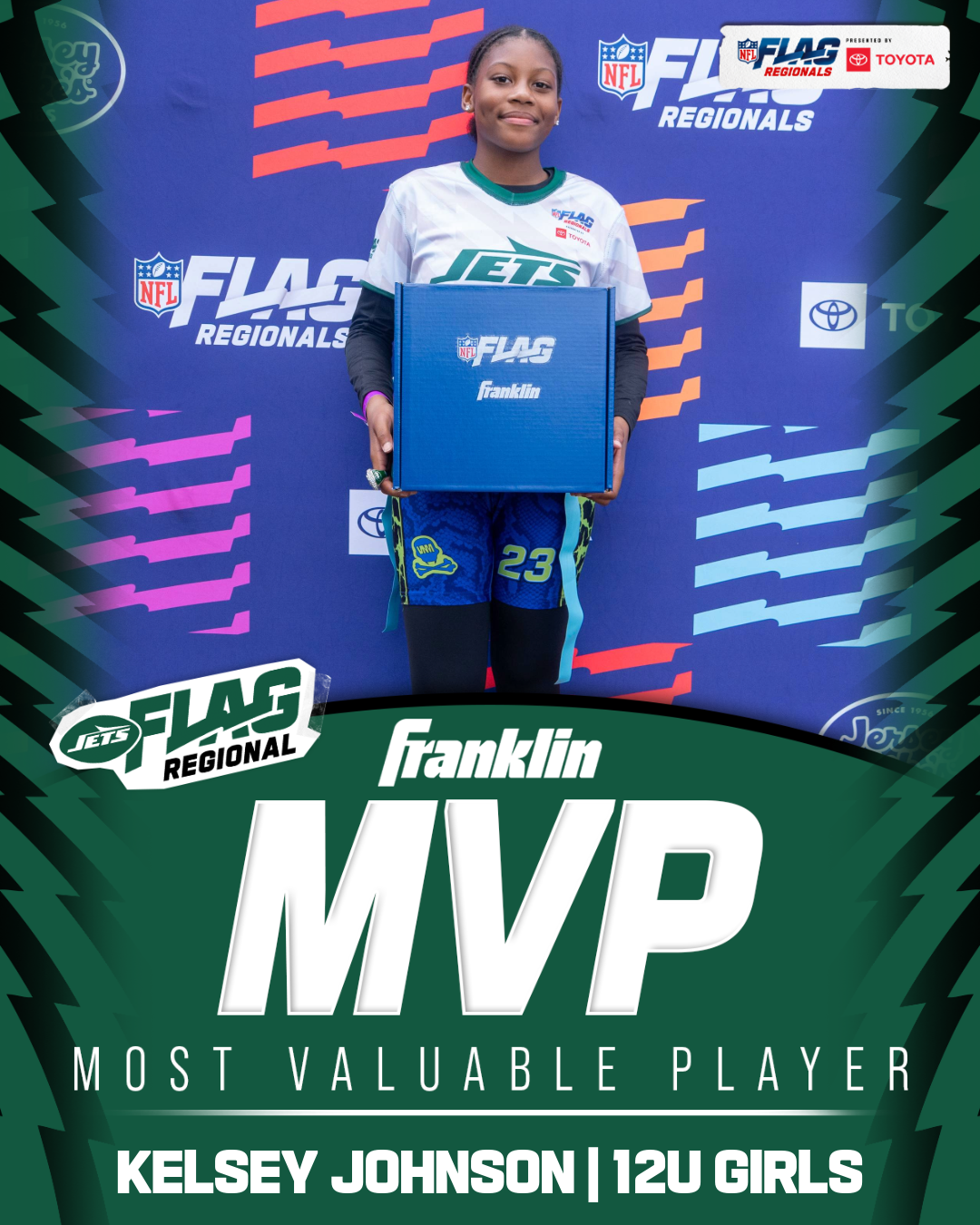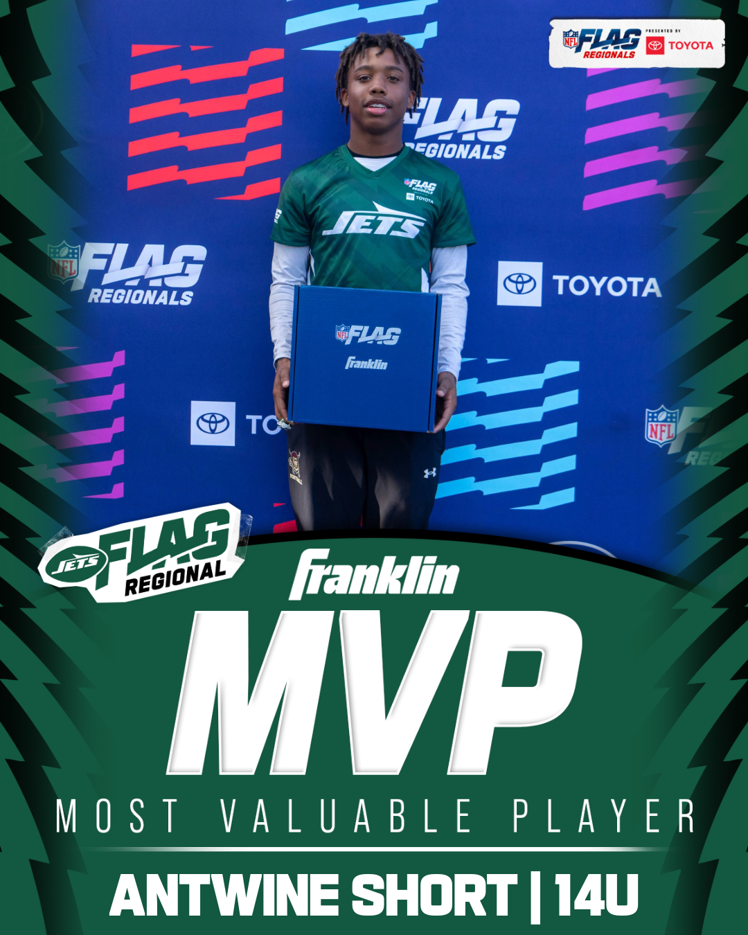 The only way to qualify for the NFL FLAG Championships is by winning a Regional or Super Regional Tournament. Qualified teams will receive a Full Bid entry to NFL FLAG Championships Presented by Toyota. Once a team qualifies, the entire roster (Athlete and Coaches) are FINAL. Edits may not be made to the rosters for the NFL FLAG Championships Presented by Toyota. Qualified players are ineligible to attend any other Regional Tournament in any division. Qualified teams are not permitted to change age divisions for the NFL FLAG Championships Presented by Toyota.