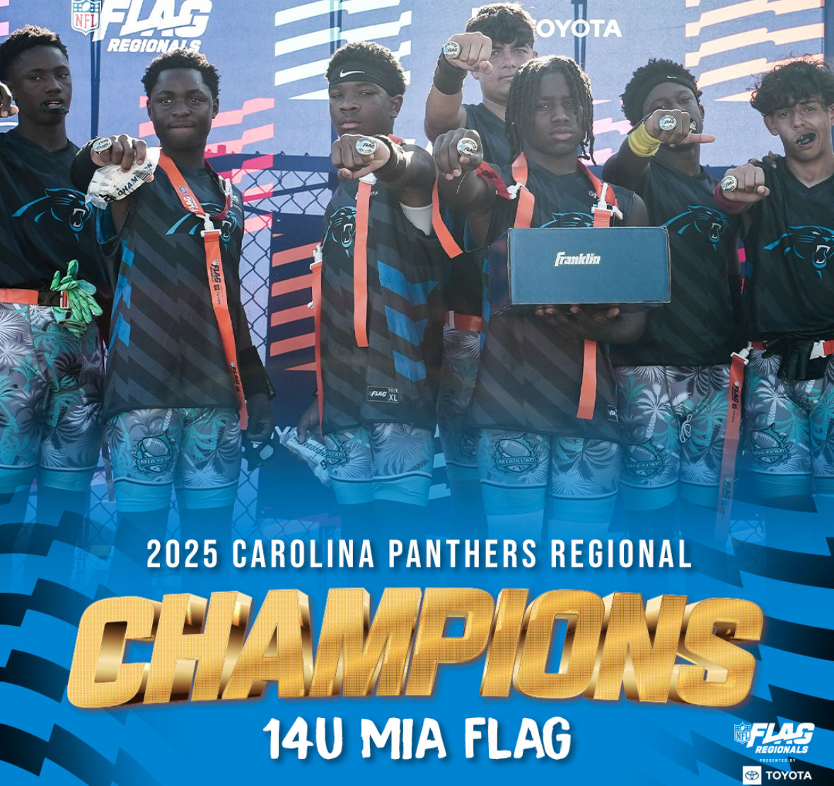 The only way to qualify for the NFL FLAG Championships is by winning a Regional or Super Regional Tournament. Qualified teams will receive a Full Bid entry to NFL FLAG Championships Presented by Toyota. Once a team qualifies, the entire roster (Athlete and Coaches) are FINAL. Edits may not be made to the rosters for the NFL FLAG Championships Presented by Toyota. Qualified players are ineligible to attend any other Regional Tournament in any division. Qualified teams are not permitted to change age divisions for the NFL FLAG Championships Presented by Toyota.