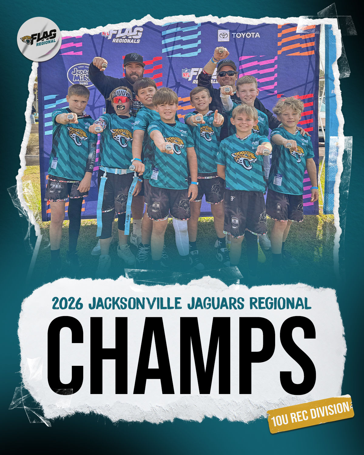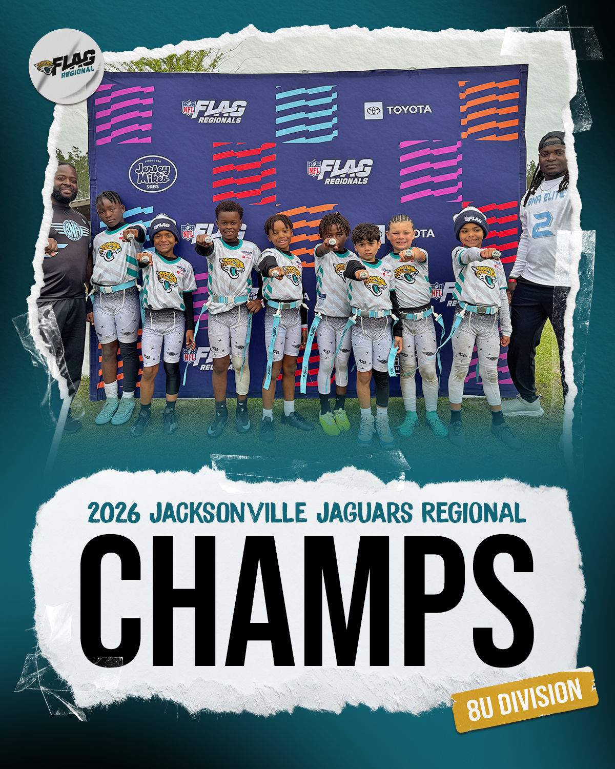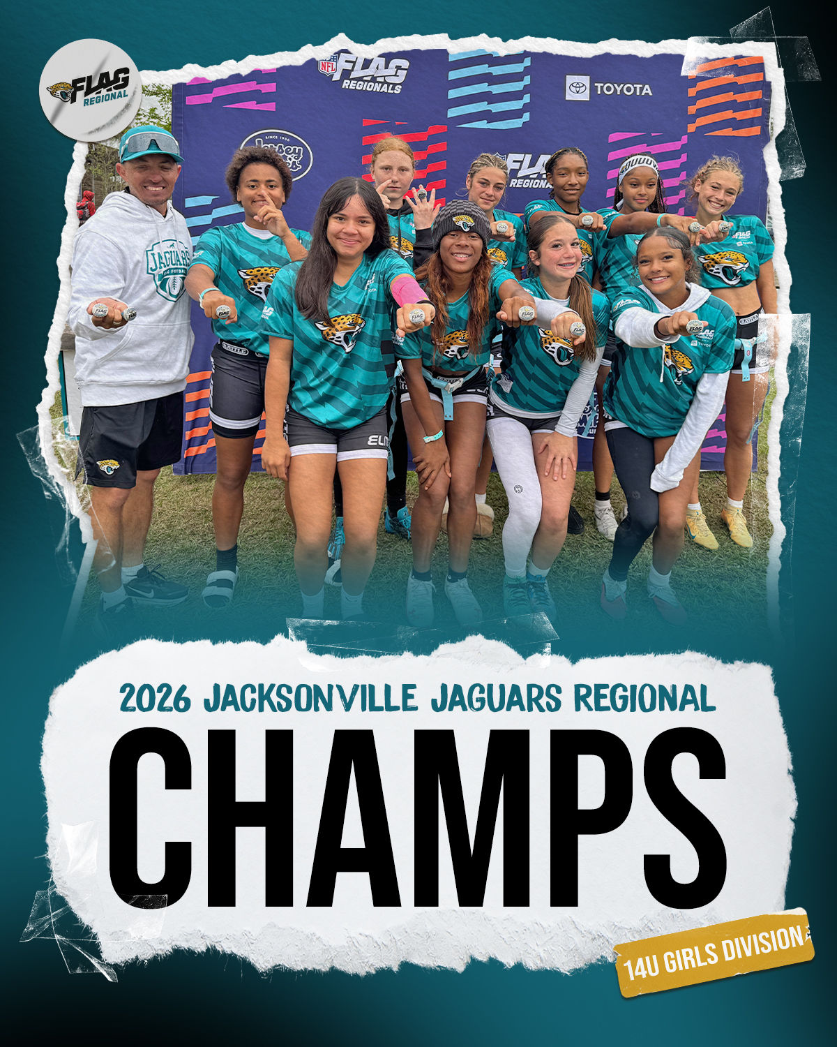 The only way to qualify for the NFL FLAG Championships is by winning a Regional or Super Regional Tournament. Qualified teams will receive a Full Bid entry to NFL FLAG Championships Presented by Toyota. Once a team qualifies, the entire roster (Athlete and Coaches) are FINAL. Edits may not be made to the rosters for the NFL FLAG Championships Presented by Toyota. Qualified players are ineligible to attend any other Regional Tournament in any division. Qualified teams are not permitted to change age divisions for the NFL FLAG Championships Presented by Toyota.