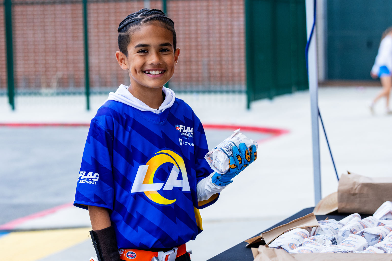 Shortly after, the Rams Regional took over Edison High School in Huntington Beach, welcoming 74 teams and delivering a full-scale celebration of youth football. Jersey Mike’s was right there in the middle of it—handing out sandwiches, connecting with families, and showing what it means to be a true community partner.