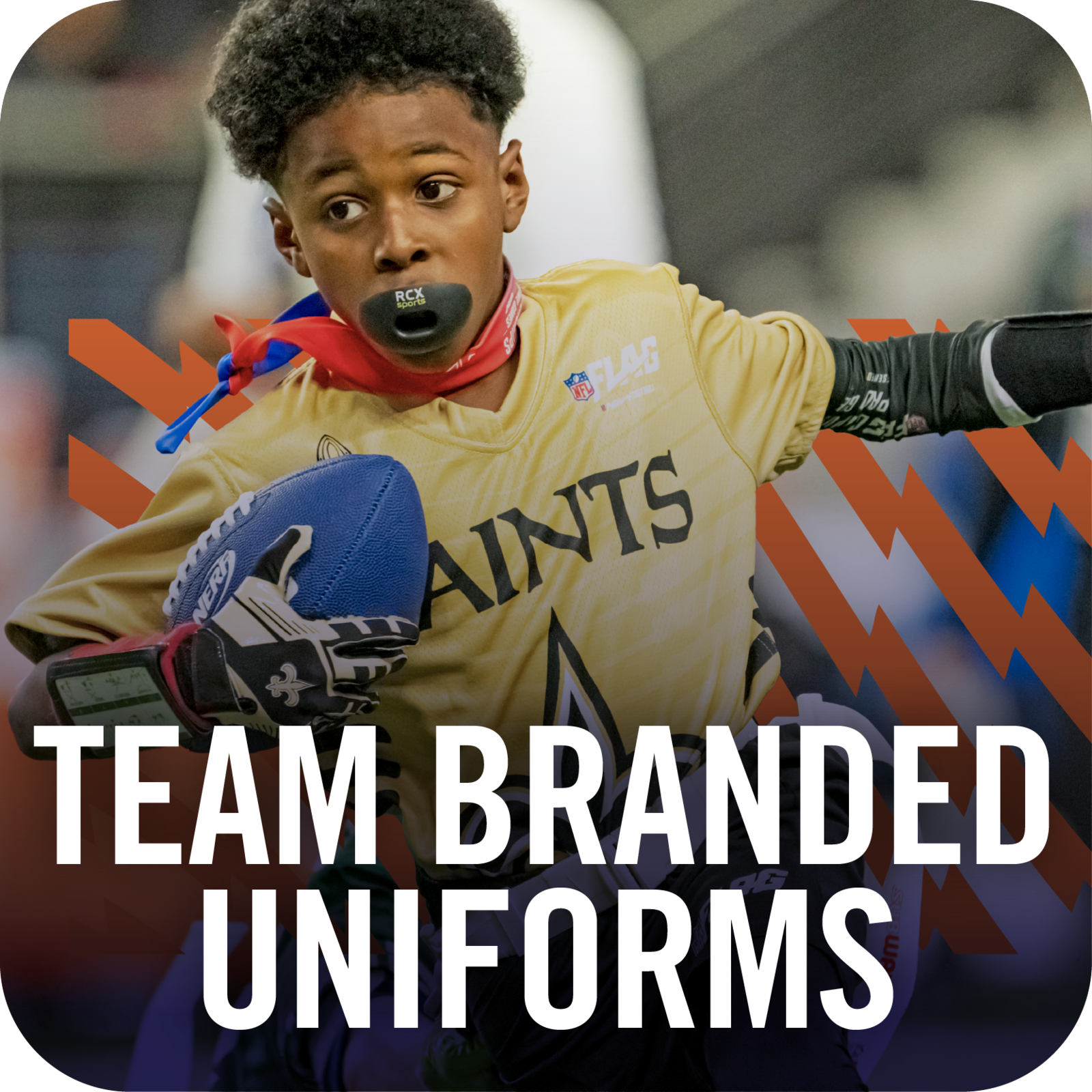 When your child plays in an NFL FLAG Club Network league, they get the same fun, fast-paced experience of flag football — with the added pride of representing an official NFL team. From custom uniforms to once-in-a-lifetime team activations, this is the next level of play.