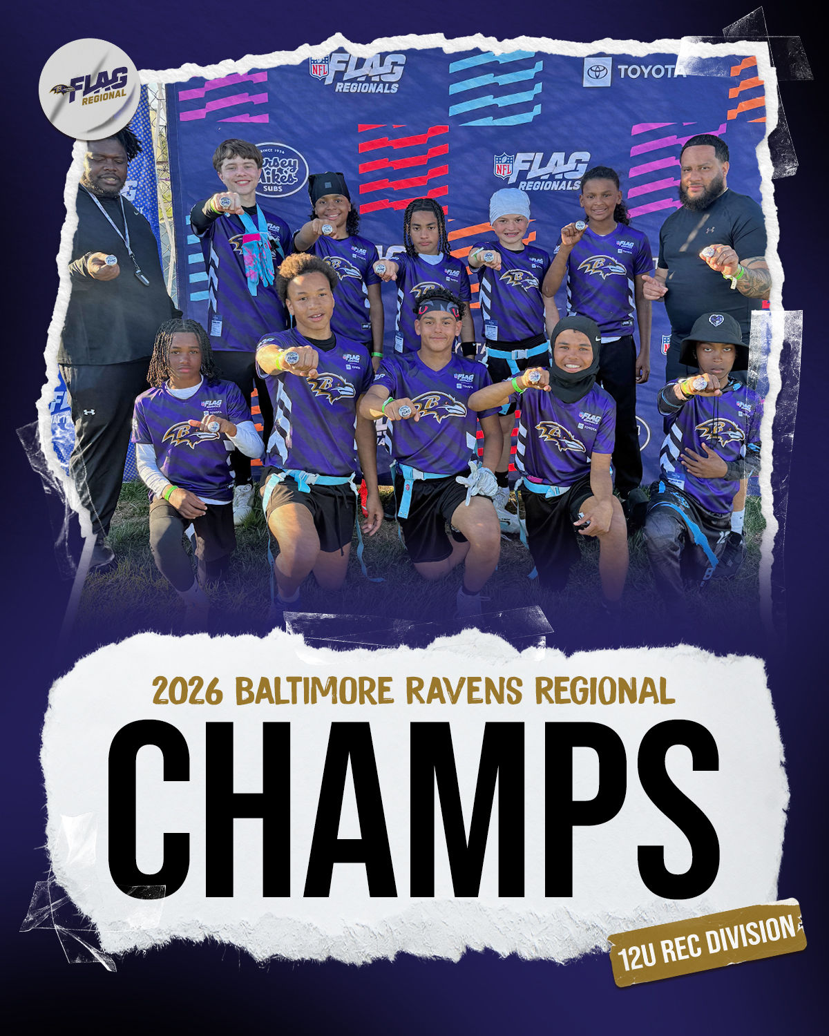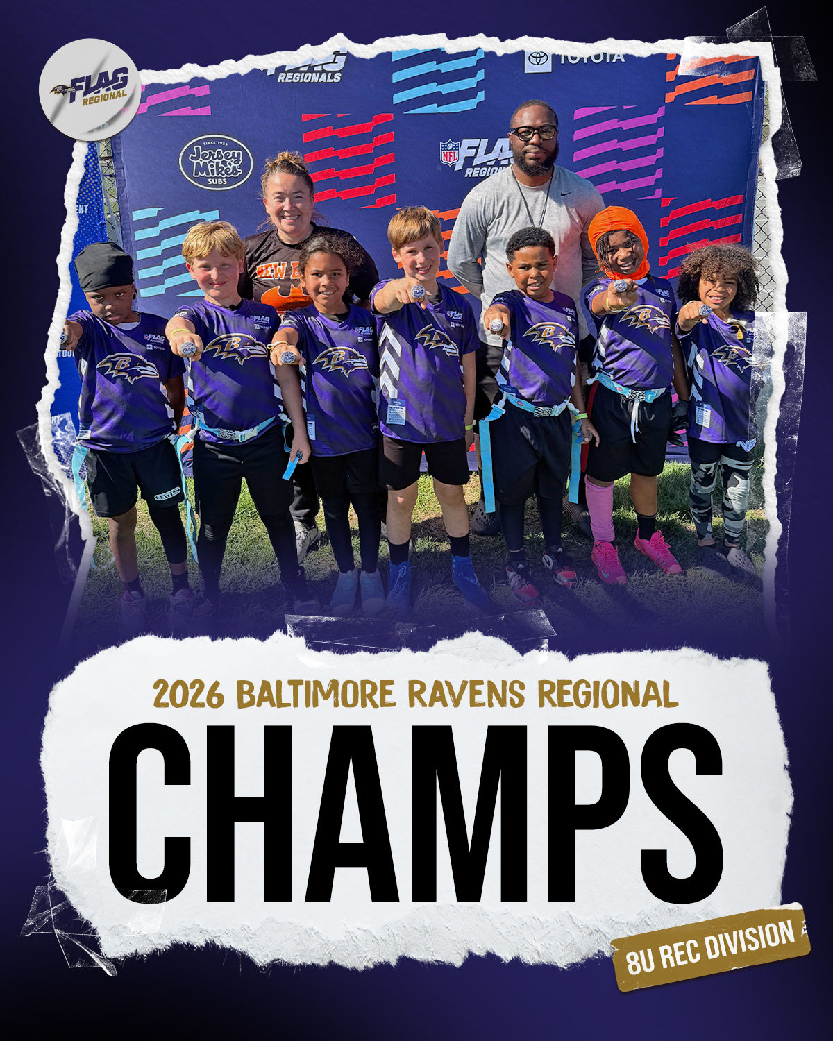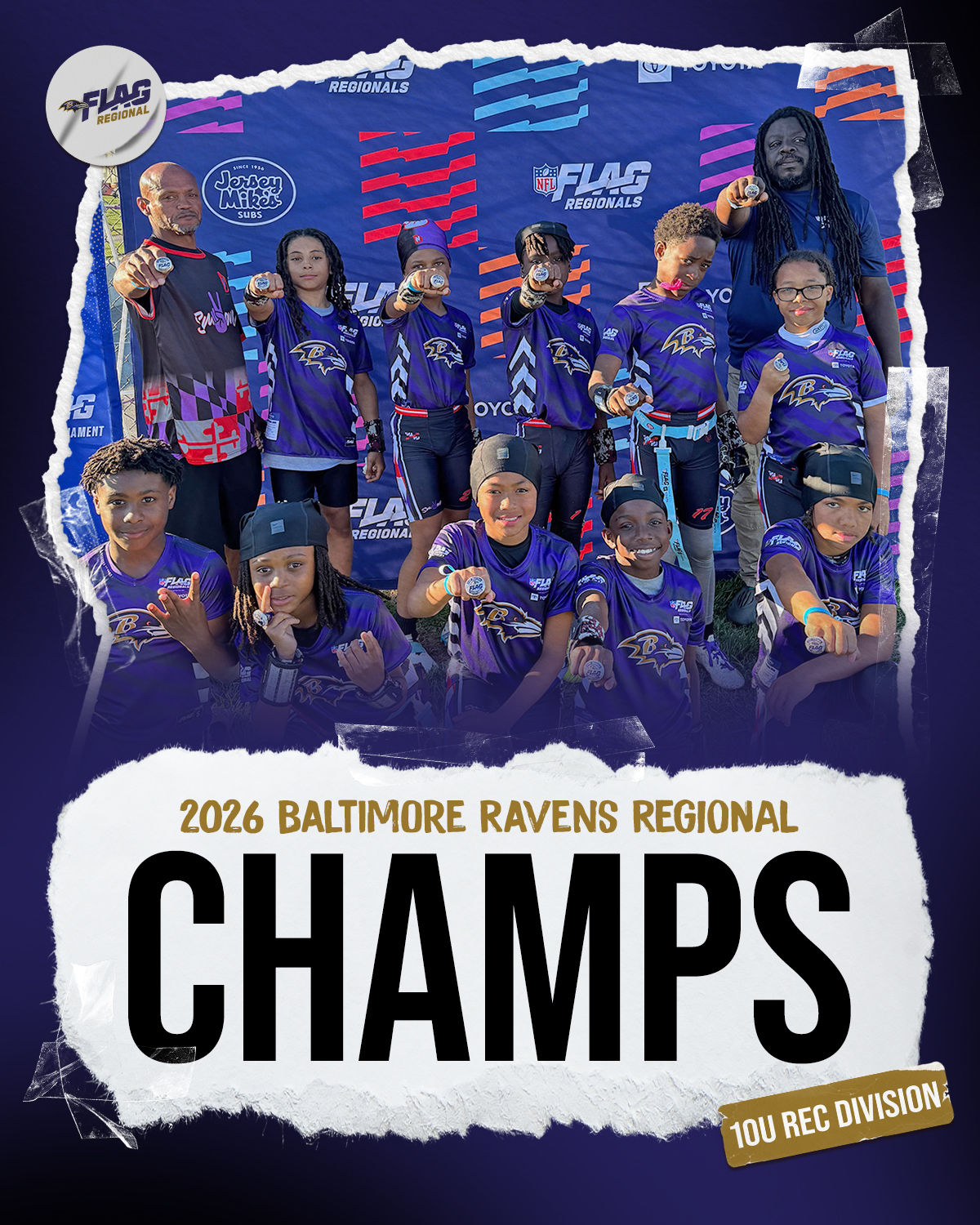 These teams battled it out on the field and came out on top at the 2026 Ravens Regional Tournament presented by Toyota. Each of them earned their spot at the NFL FLAG Championships.