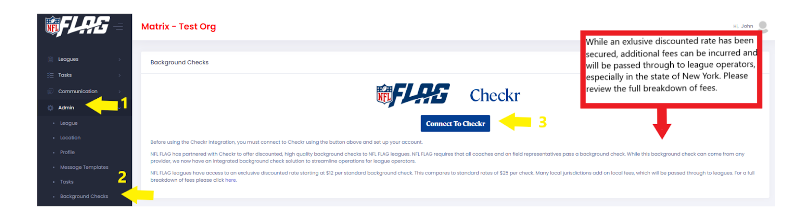Log In: Access your Matrix account and select the Admin option from the left-hand banner. Click on Background Checks.