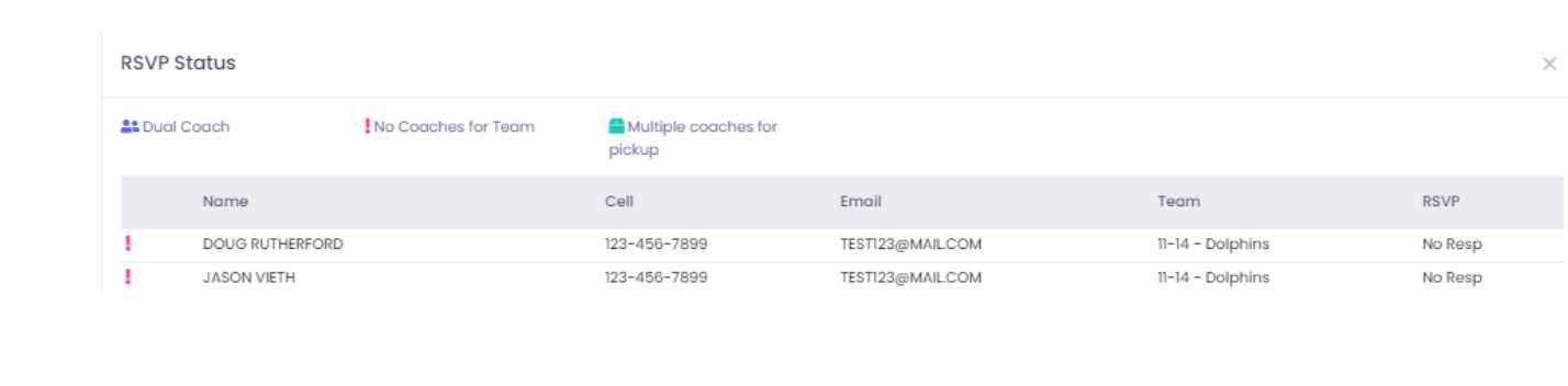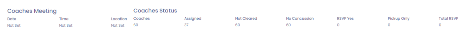 The RSVP status for the coaches meeting can be found in the Coaches section, where league operators can: