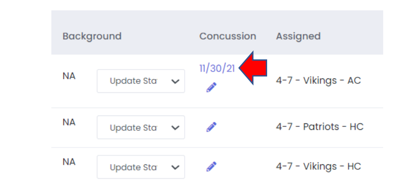 Background check and concussion test statuses.